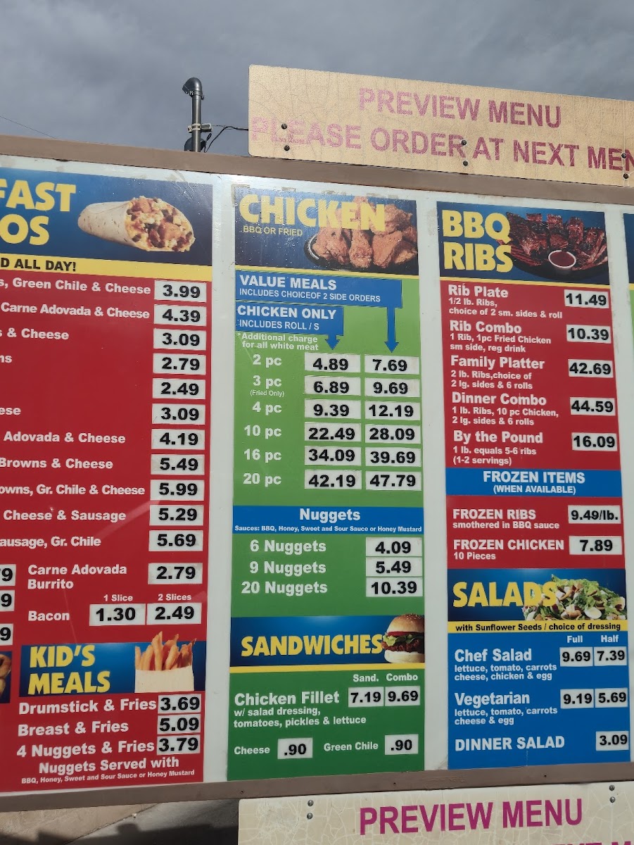 1 lb. ribs, 10 pcs. chicken, 2 large sides & 6 rolls