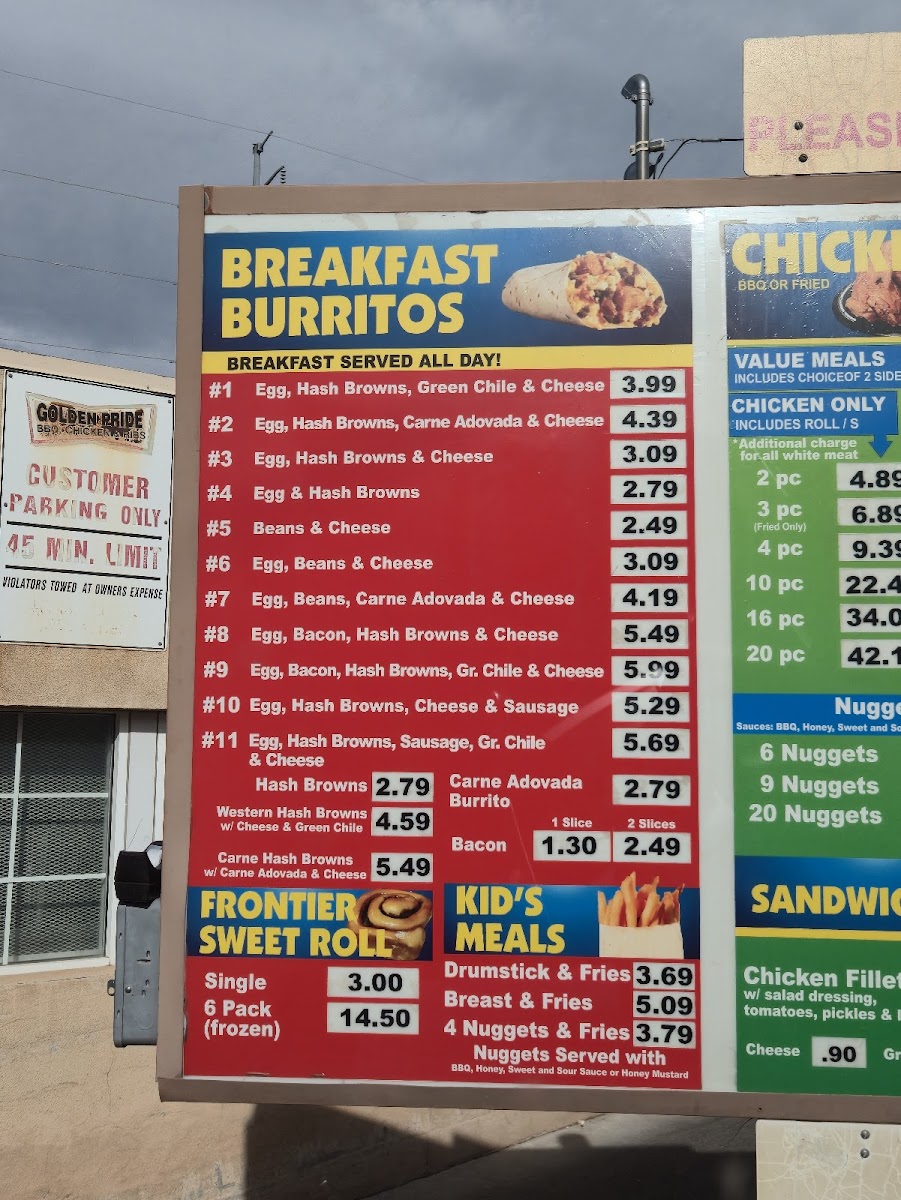 beef, beans, green chile inside, w/ green chile stew & cheese on top