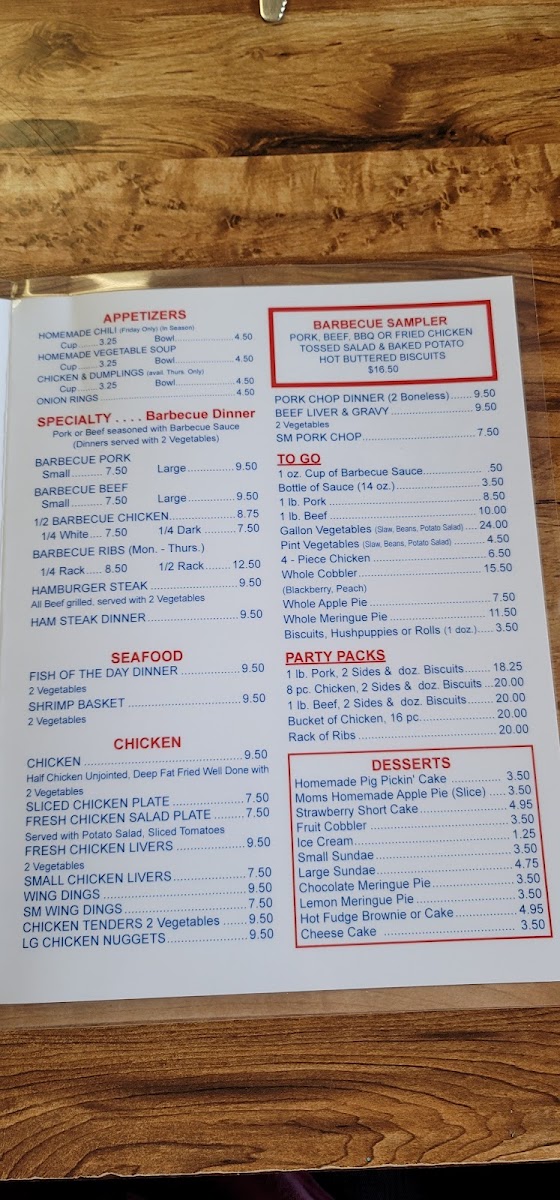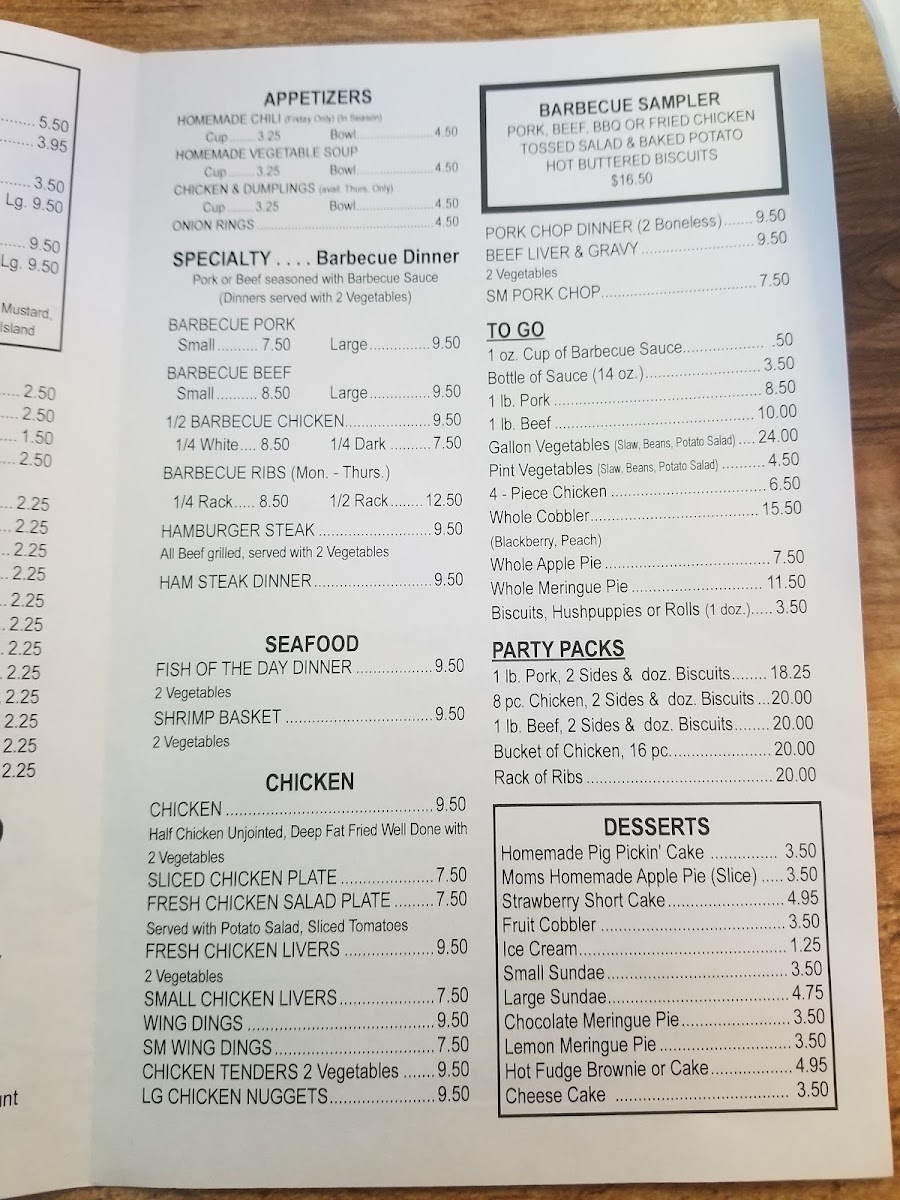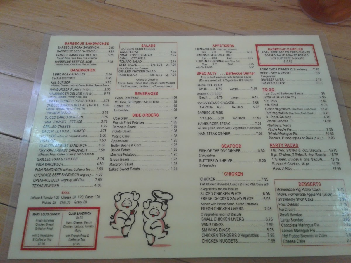 K & L Barbecue Menu