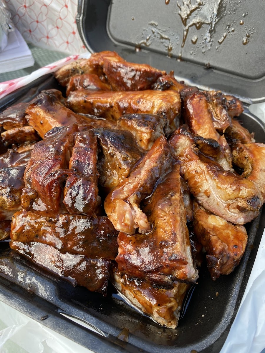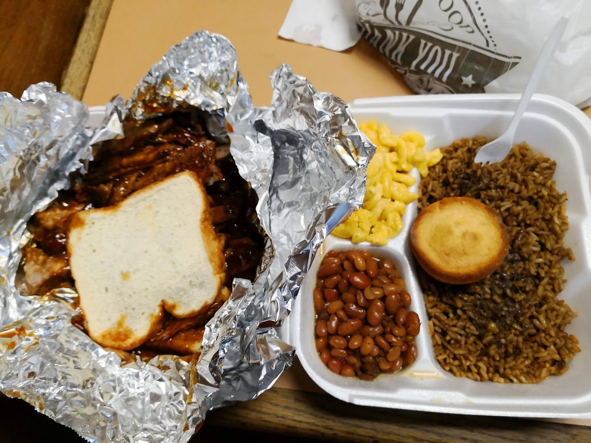 The restaurant doesn’t seem to be a sit-in restaurant but maybe it’s set up differently on the weekends. Either way we planned on getting the food to-go. Definitely get the full rack of ribs - best bang for your buck and it’s more than enough for a family of four. In total we purchased the full rack of ribs (with the bbq sauce) mac-n-cheese, potato salad, beans, and the peach cobbler. I highly recommend getting the side of beans with your ribs. It’s a perfect combo.
