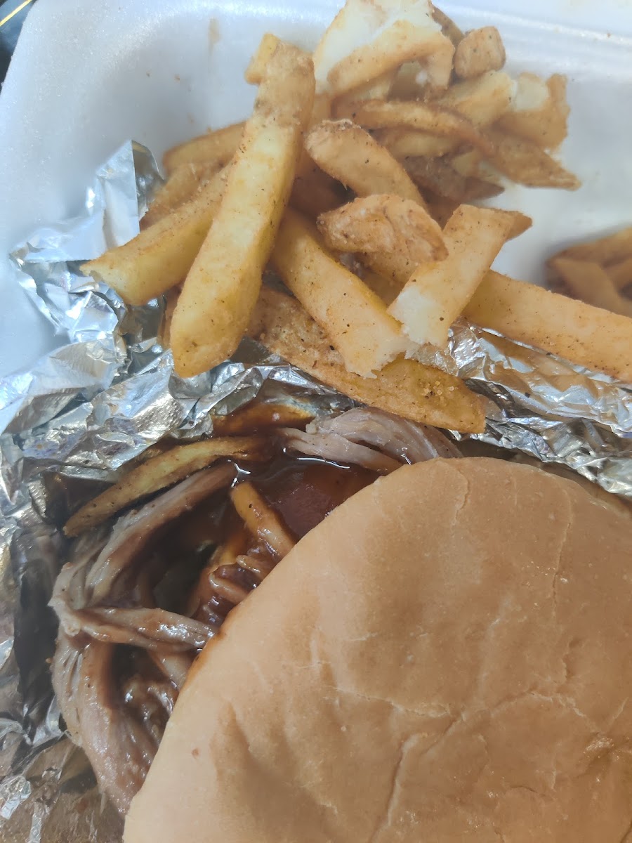 I was searching for a local BBQ place open on Sunday. What I found was this hidden gem! They have barbecue and so much more! One of my biggest compliments not only was the barbecue sauce Delicious, but the sides were phenomenal. Most barbecue places have sides that taste like cardboard not this restaurant. The coleslaw was something else Some somebody put their put off in that recipe. It was so good I can’t even explain how it taste any other way. The potato salad (heaven) was off the chain. The baked beans were really good. The pulled pork was perfect not dried out. The portions sizes were very generous for the price. I will be returning the Restaurant was super clean the employees/owner extremely nice the atmosphere there made you feel like home so friendly courteous and the sweet tea yall have to try this place So many options on the menu I’m gonna try most everything eventually!!