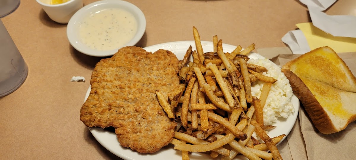 The chicken bites are so yummmy! Homestyle fries and the coleslaw is too die for. The waitress was so kind and kept a good conversation! Would 10/10 recommend. One of the best restaurants in muskogeee. Fairly cheap prices.