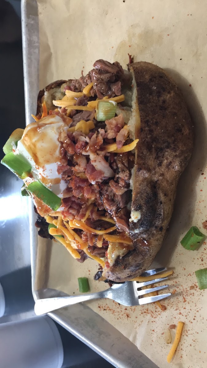 I love the brisket potato...especially when it's fresh, it is huge. The customer service could use a little tweaking. It would be nice to be acknowledged by the employee's behind the counter when you step up to it. My boyfriend typically gets the loaded brisket fries and really seems to like them a lot.