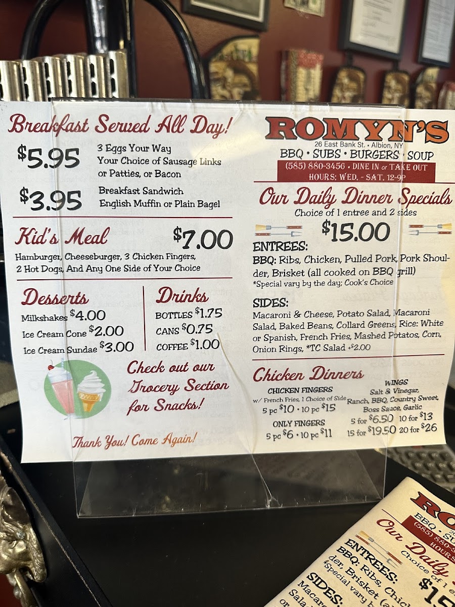 Ro’myn’s BBQ Menu