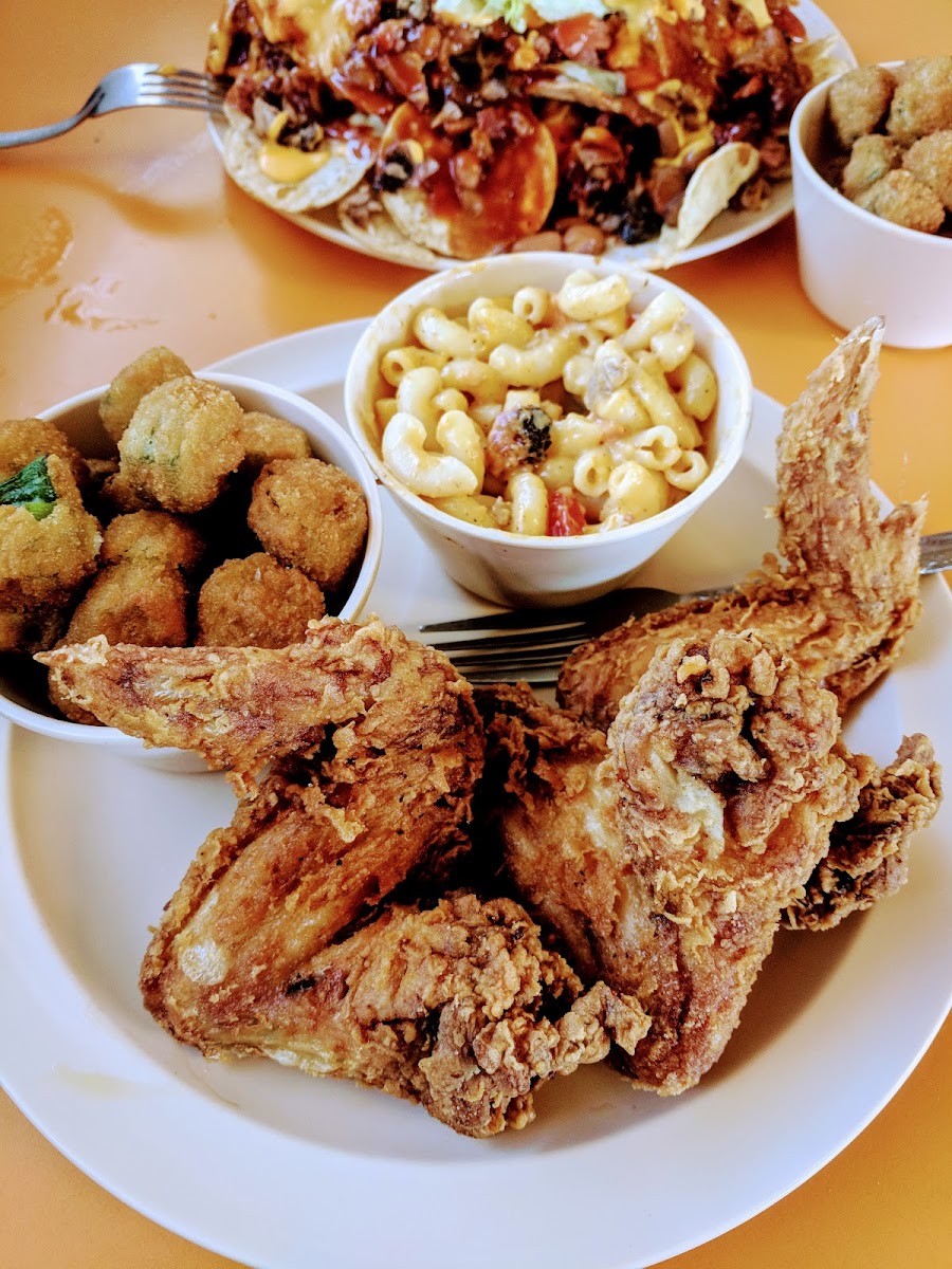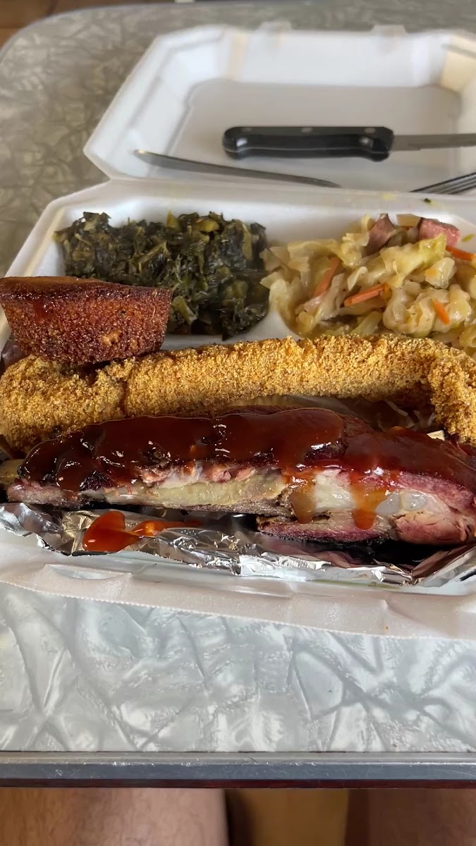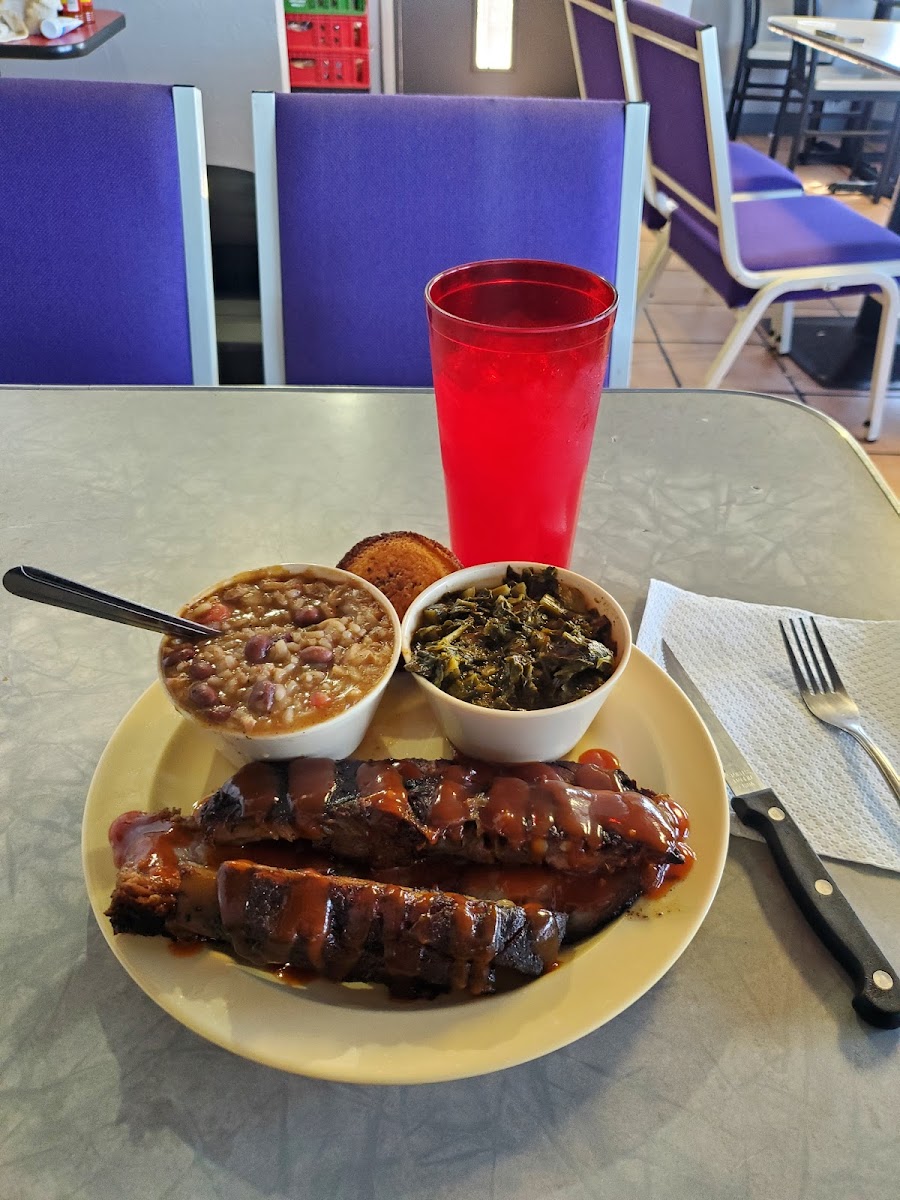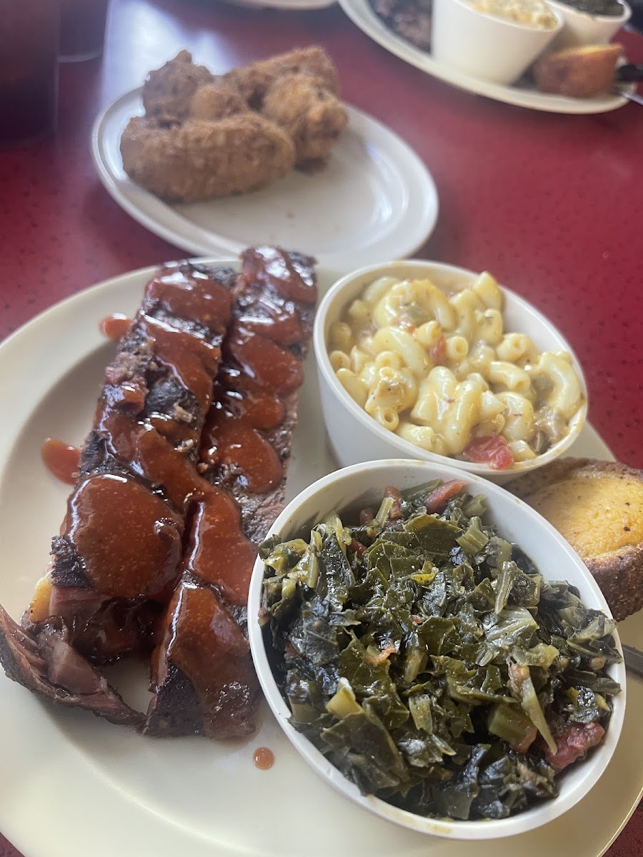 We stopped here on our drive to Dallas. It is a bit off that beaten path in an industrial part of town. Good and staff were super friendly for a Saturday afternoon. The wings were fried to perfection with a great seasoning and flavor-not greasy. This gives the fried chicken flavor without ordering a full fried chicken-yum! Rib meat fell off the bone. Brisket was tasty, but the cabbage and yams were awesome. Our sweet teas were never empty. This place is not for those in a hurry as everything is made fresh and sitting there is like hanging with your family. Thank you for the much needed break from the road with good old great hospitality.