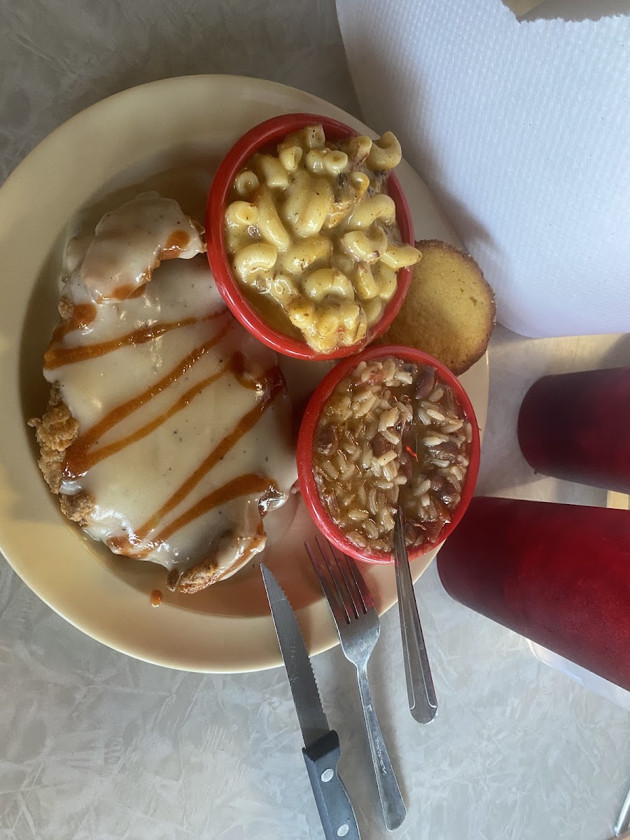 Boss Lady and I came in for something a little different in Amarillo. The joint's not too petty to look at, but the food more than makes up for it. It's very dated and needs a make-over. We had an awesome conversation with the owner/cook who entertained us for a while. We tried the chicken fried chicken with gravy (ask for no BBQ sauce), fried rib, fried cabbage, potato salad, ox tails, fried okra, gumbo, and corn bread. It all was very tasty. We took a piece of chocolate and lemon cake with us...they were delicious! If you're in the area, come try Shi Lee's, just don't be scared of the outside.