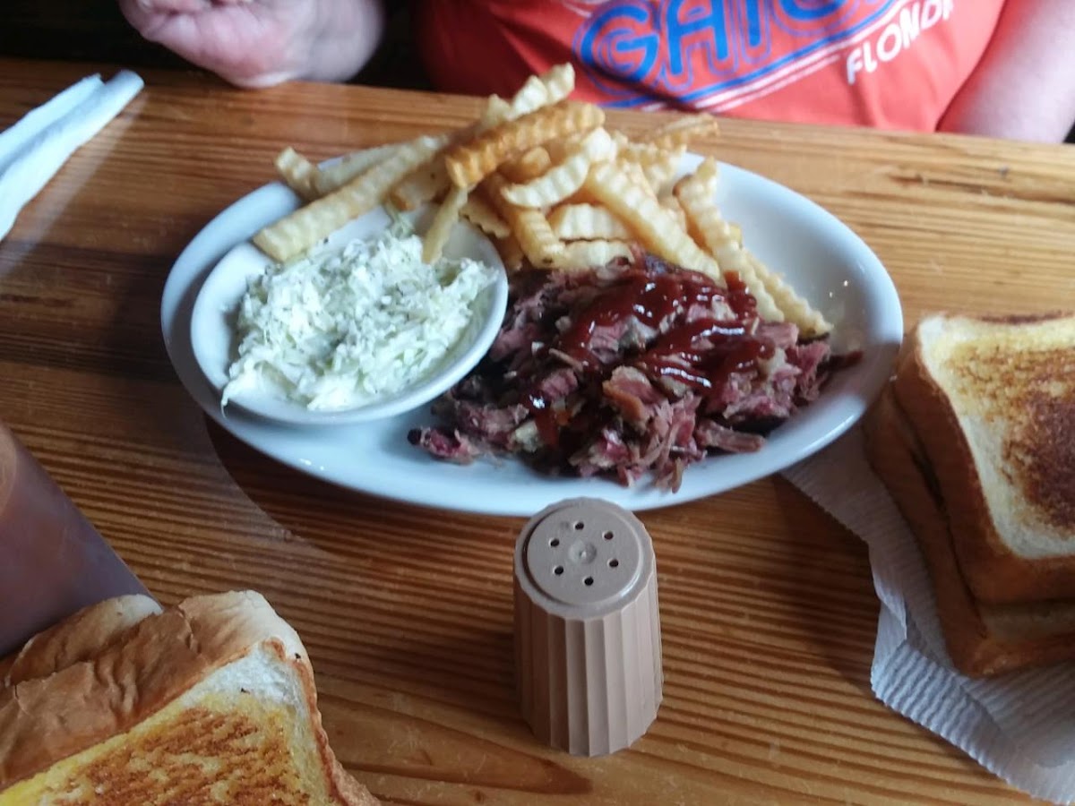 Second time I’ve been here. It’s always a pleasant surprise when the bbq is good the first visit. The second time is the key. If I go twice and the food is amazing both times, to me that is a sign that the quality is always good. The sweet potato fries were perfectly crispy on the outside, soft on the inside, steam wafting over my plate as it came out fresh. Rack of ribs was superb. Perfectly tender, could pull the bones out with no resistance, seasoned to perfection. Garlic bread was fluffy and absolutely addictive. Definitely a good gem of this neck of the woods if you are ever in the area. 10/10 would recommend.