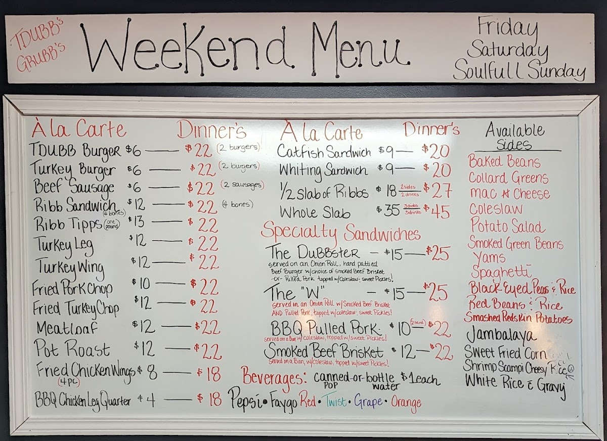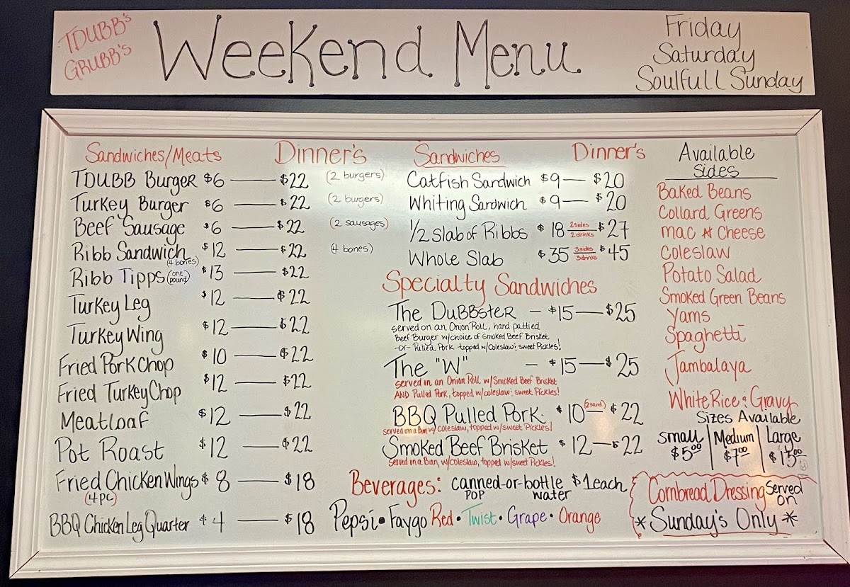 TDUBBS GRUBBS DELICIOUS SIDES Regular Size $5/each LARGE $15/each
