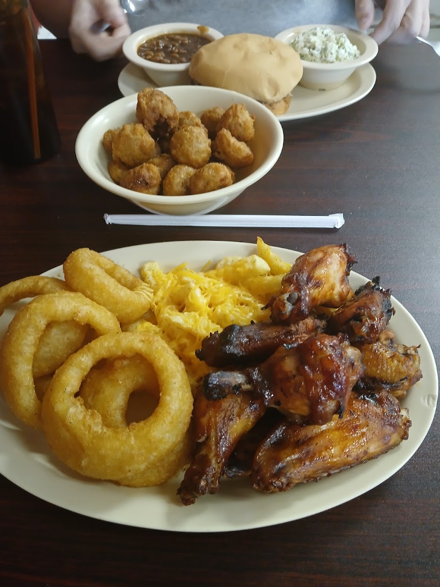 Food was filling. BBQ sauce was spicy. Tea was weak.