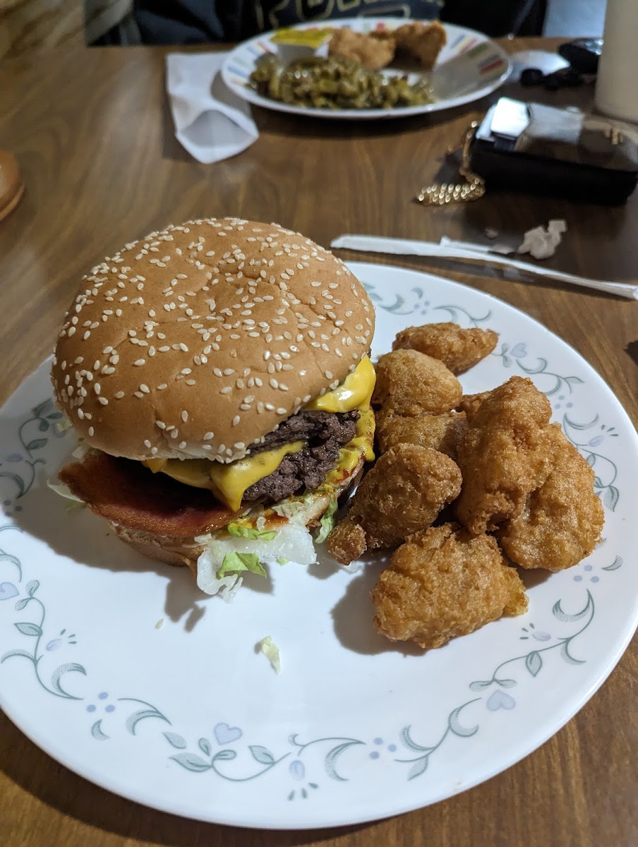 The whole crew here does a absolute bang up job preparing good food for the Goodwater community and surrounding area. Though the food prep is a tad slow, it's completely offset by the quality and taste of the food. The speed is understandable though because this is a family run business with a very small kitchen and a lot of people eat here regularly. They constantly have call in orders and are normally very busy all day. Hint, the burgers are great and the chicken finger baskets are excellent! No dried up puny overcooked fingers here. These are very tender good sized fingers that tastes great!