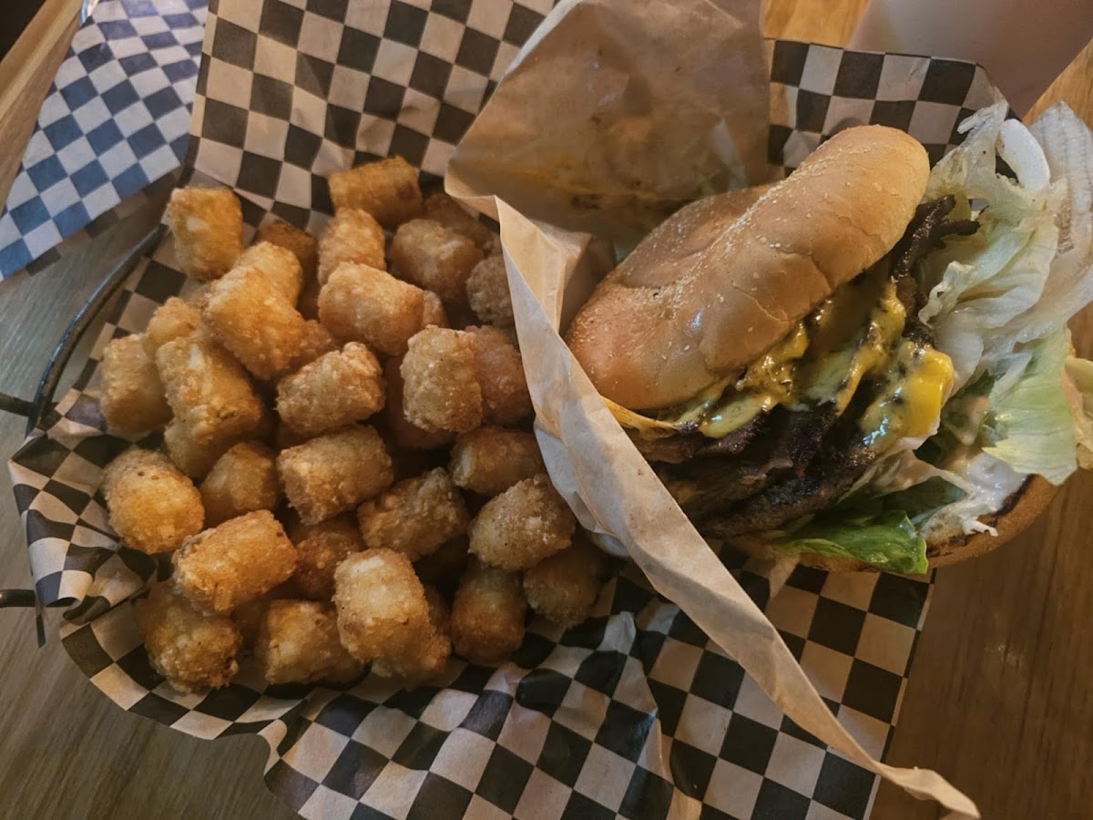 Really good food!!! Their drinks at the bar are really good too. We had the mushroom burger and tots and a philly cheese steak sandwich with fries. Instead of steak they put shaved brisket on the sandwich it was juicy and tender and was really good. We got an onion ring side with their house made chili and brisket with cheese and onions on top the side was pretty good too. The drink in the picture is the Lavender Lemon drop martini it tasted really good it had a summery vibe and was perfectly floral. 10/10 would go back and eat here again. I loved how cozy the inside of the restruant was and there was nice spacing between the seating.