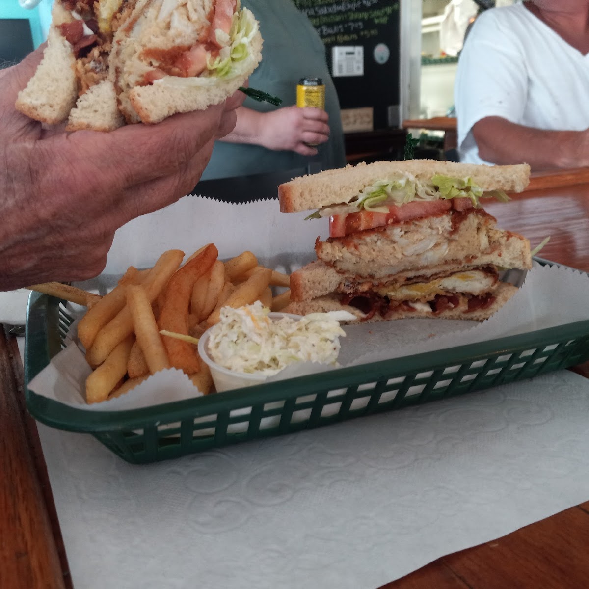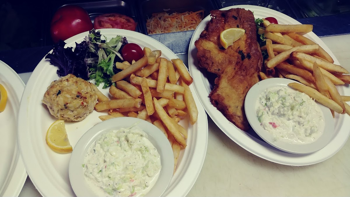 Fries were great. Staff was very nice and thorough. Pretty sure the fish was frozen. I should've asked the waitress what she recommends. Burger was good!!! Good atmosphere... Parking is a little crowded. Over all, a good place to grab a lunch or a beer if you drink!