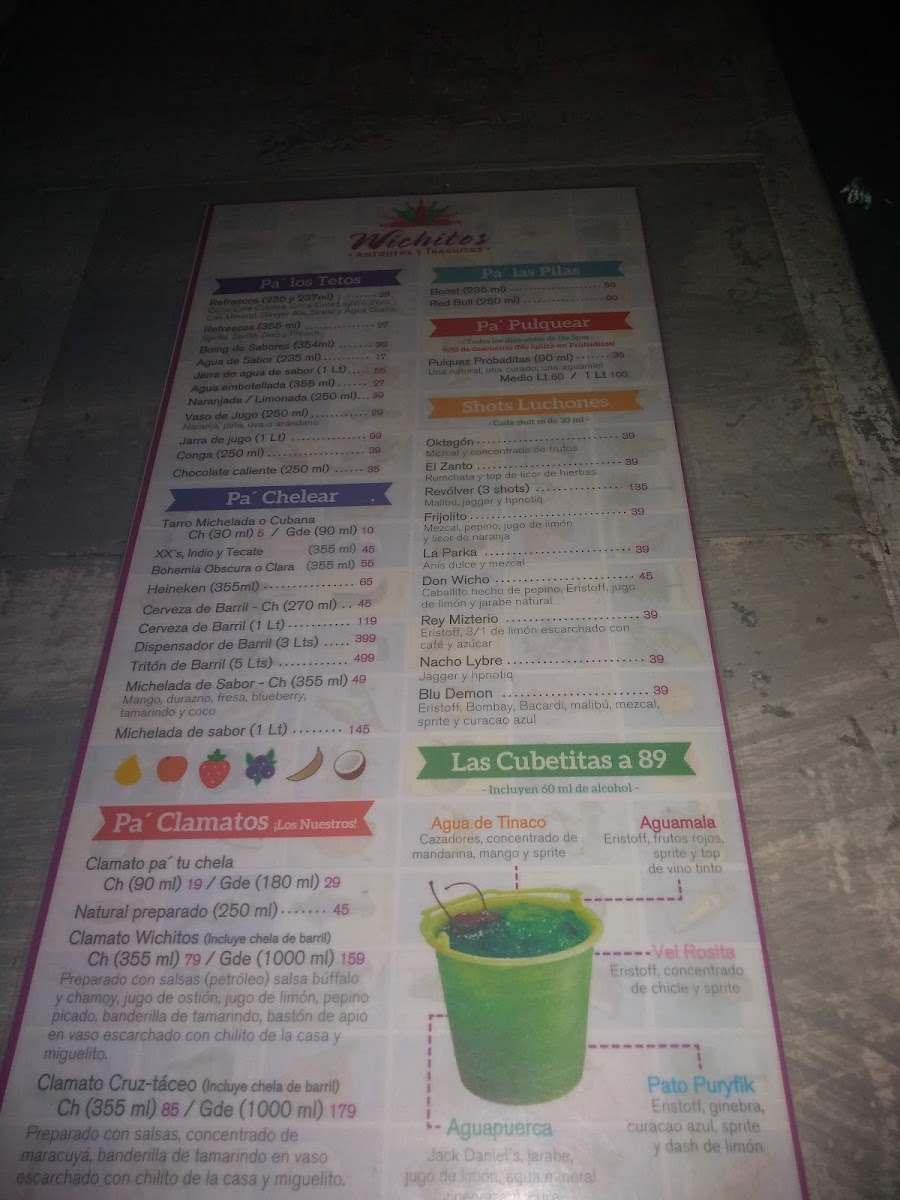 (Incluye chela de barril) preparado con salsas (petróleo) salsa buffalo y chamoy, jugo de ostión, jugo de limón, pepino picado, banderilla de tamarindo, bastón de apio en vaso escarchado con chilito de la casa y miguelito.