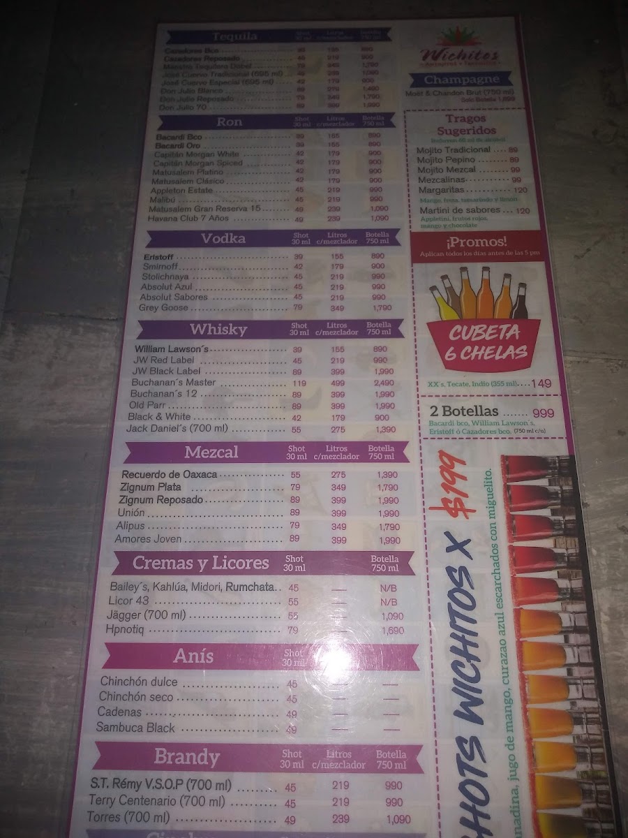 Eristoff, bombay, bacardi, malibú, mezcal, sprite y curacao azul