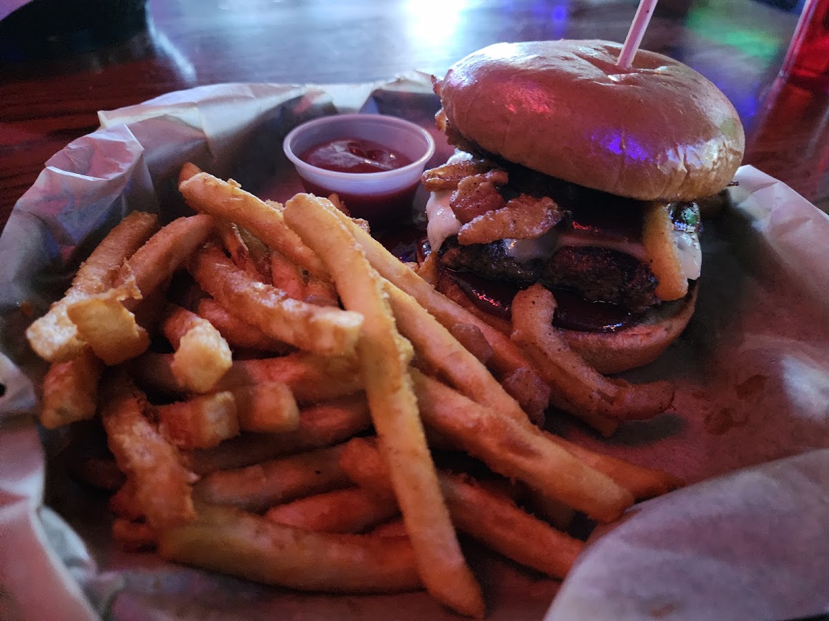 Baysos. Food is great, loaded fries, jalapeno poppers, jalapeno burger amazing!! the workers are great and the atmosphere is always wonderful . Love going to this small bar. If you haven't been definitely need to check them out!