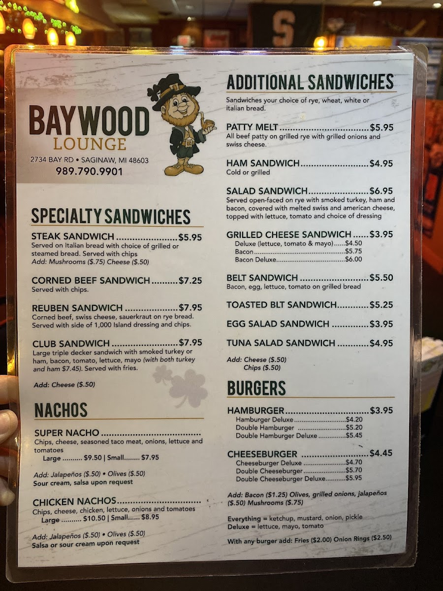 Deluxe (lettuce, tomato, mayo) $5.50 ; Bacon $6.95 ; Bacon Deluxe $7.50