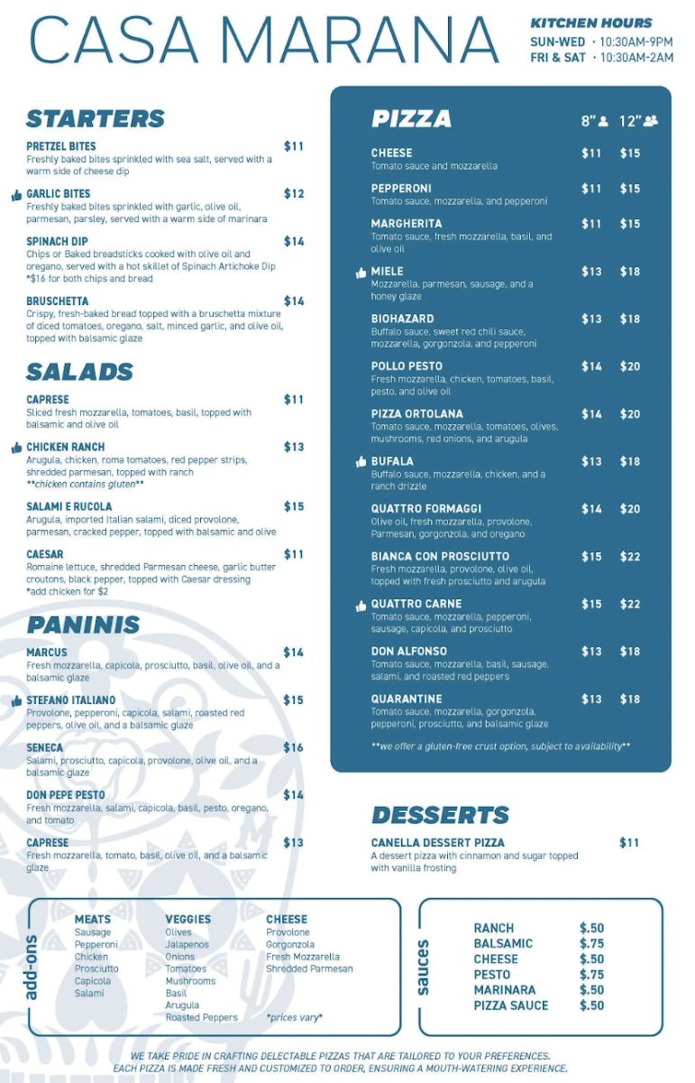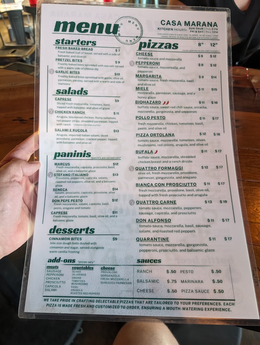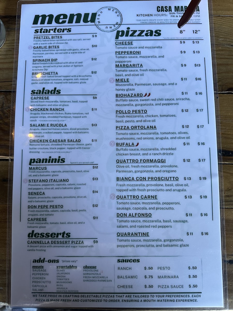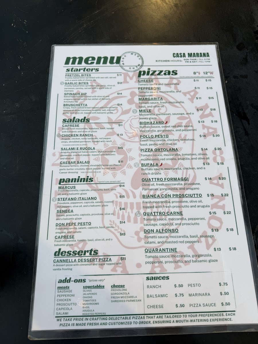 Tomato sauce, mozzarella, gorgonzola, pepperoni, prosciutto, and balsamic glaze