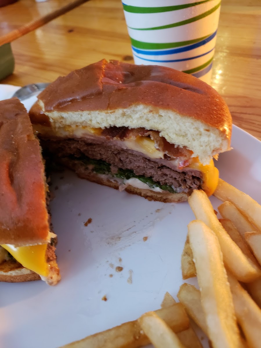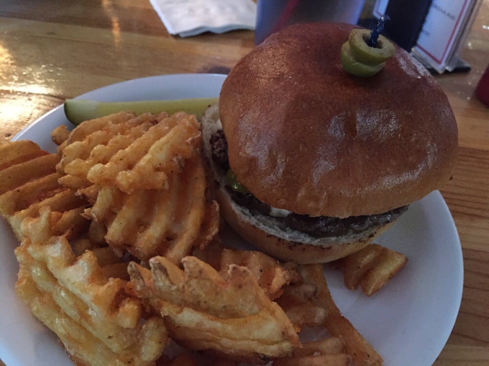 Honestly, this place was such a great surprise. It is large on the inside. The waitress / bartender was so nice. The hamburger was absolutely delicious ! We will be back for sure.