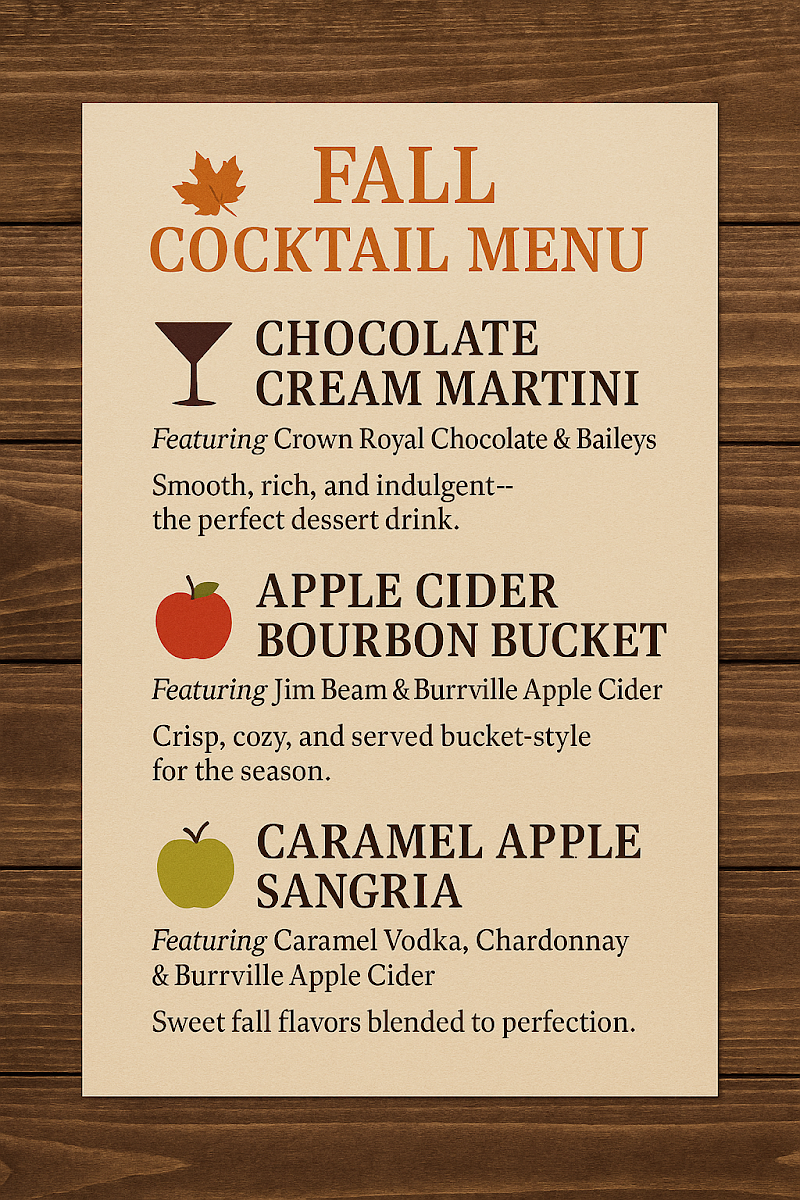 Fall Cocktail Menu