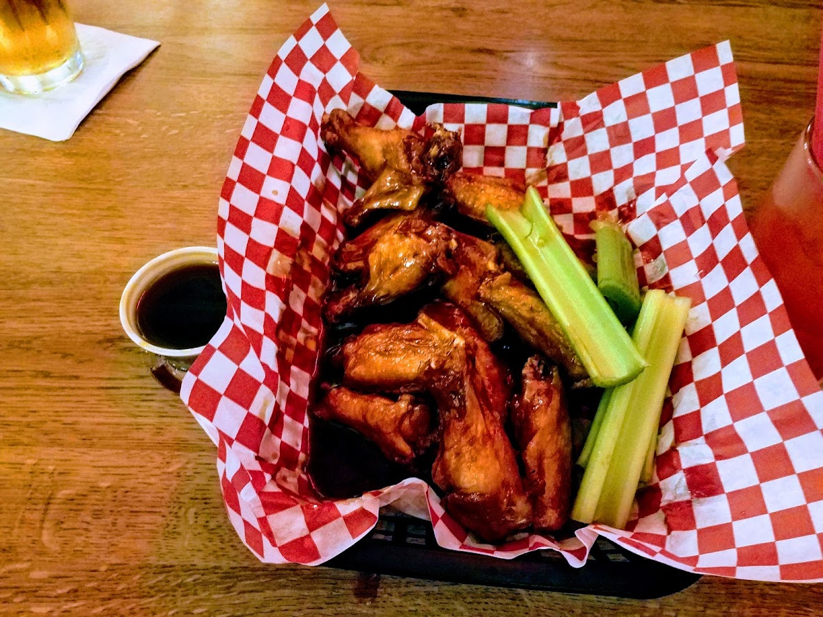 Bone in wings done to perfection. Crispy and tender and a homemade ranch i swear you can drink.