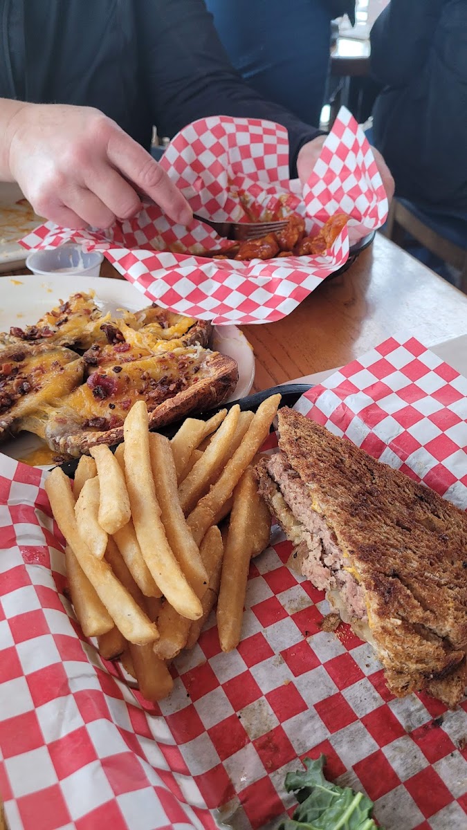 Simply put, this place is great. Part biker bar, part all-american restaurant and part pub. There is something for everyone. The staff is very friendly and attentive. The servings are massive! The boneless wings are basically chicken tenders. About those wings, I ordered the 'prairie fire' boneless wings and was told I needed to try the sauce before I could order them....and I glad I did. This hot sauce is no joke! Heavy vinegar based, but with a kick that you won't soon forget. I've had 'hot' wings at other places that are an absolute joke compared to the prairie fire. Blue cheese won't save you. Beer will only make the fire of a thousand suns cover your entire mouth. These things are deliciously dangerous. My only tip: get boneless so you don't have to use your hands.