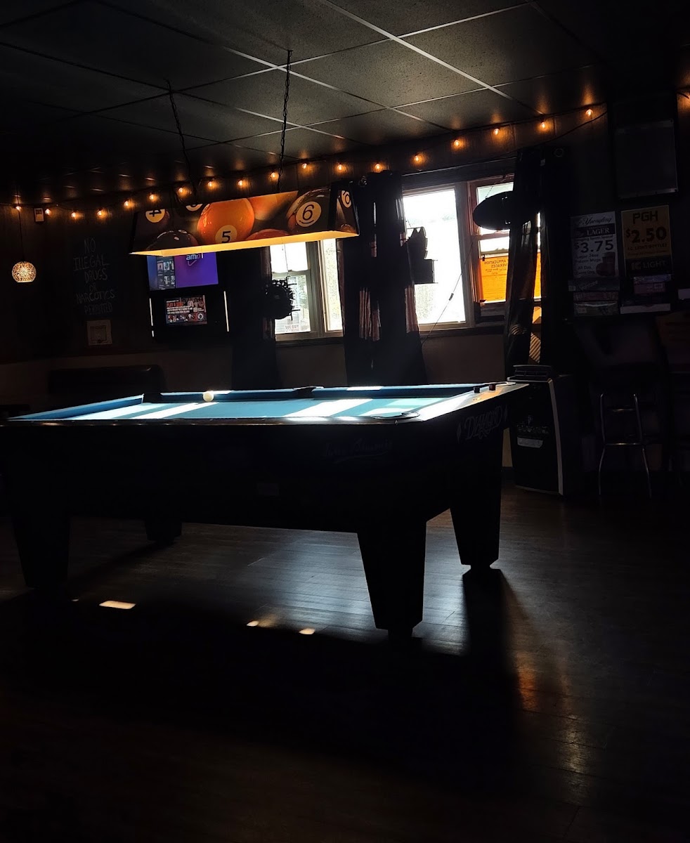 Favorite hang out spot! Brand new diamond pool table, AWESOME food (the Reuben is a must!), draft beer (YES) and a fun staff, Especially the new owner. (Who has done an amazing job turning the place around) Overall, it's a super laid back spot, where you never feel out of place and everyone is so easy going. Definitely a cool joint!