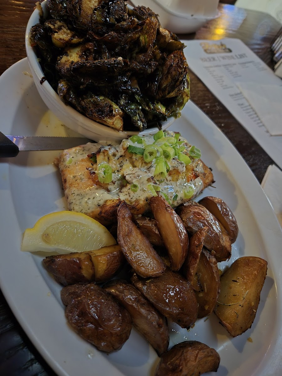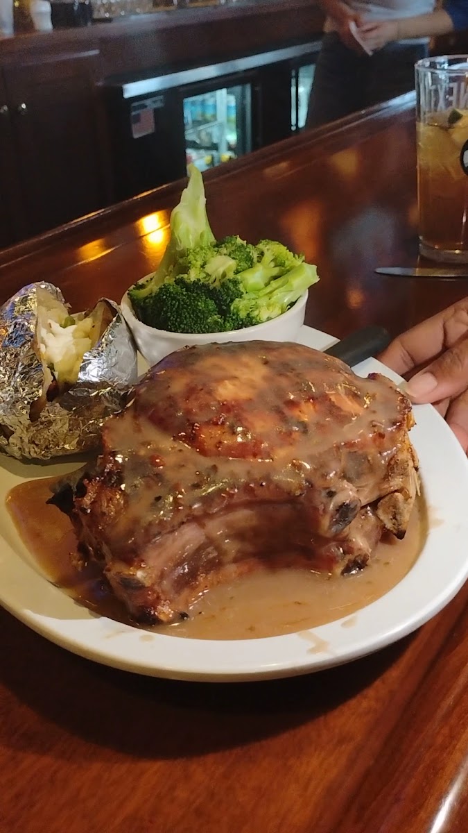 Definitely a pub. Small,loud,friendly atmosphere. Tracy was our server.Very accommodating. Very sweet personality. I ordered the 1/2 chicken dinner and my wife got the fried Cod. Side salad was 1 of my sides,asparagus was my other. Chicken came piping hot had to wait to eat... Very crispy and juicy inside. It was a pleasant experience.