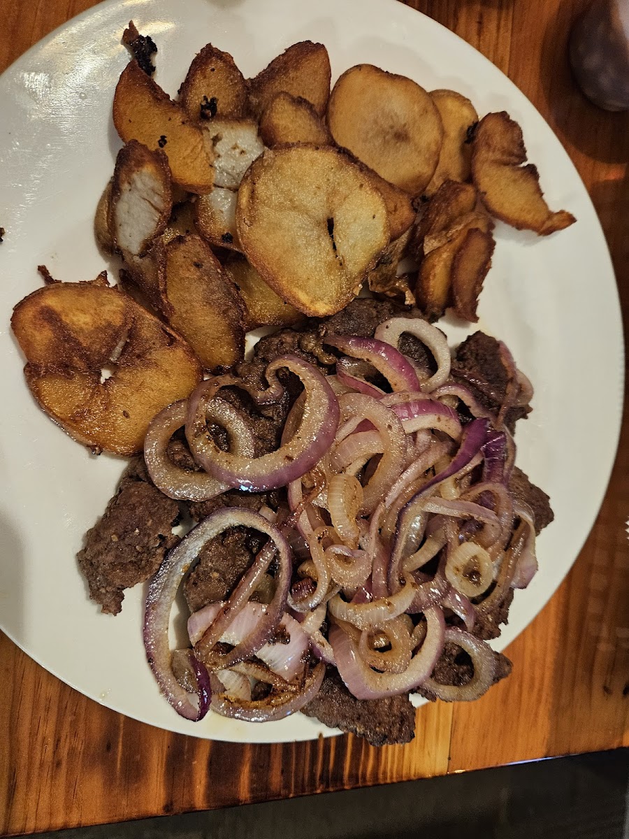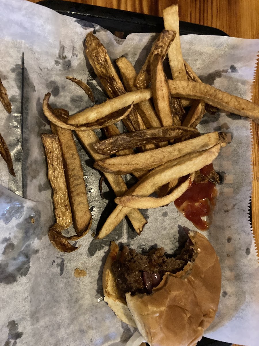 I had the chicken bacon ranch with beer batter fries. The sandwich was excellent. The mushroom and Swiss looks fantastic so I’ll be getting that next time!
