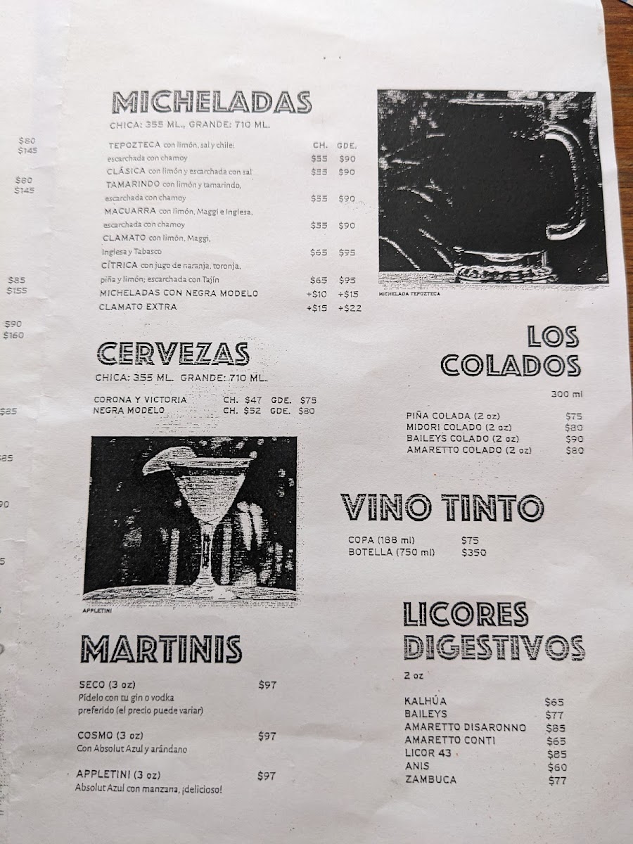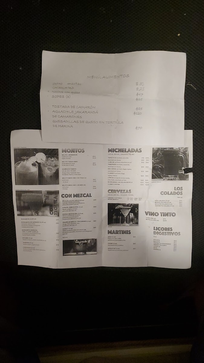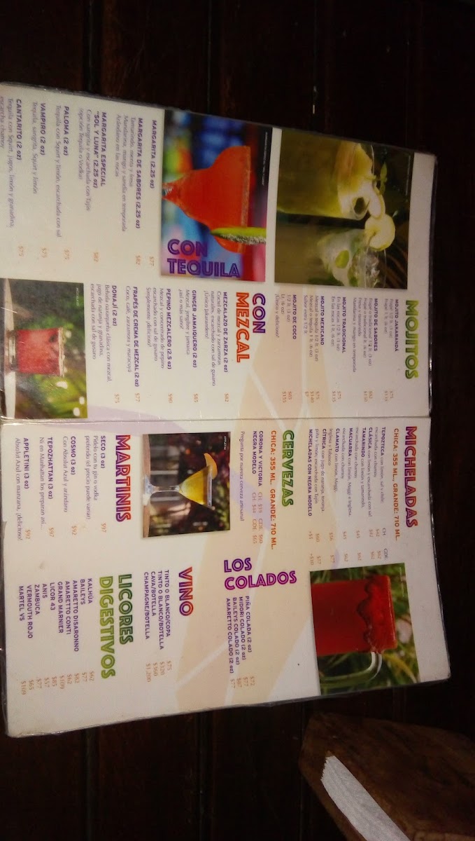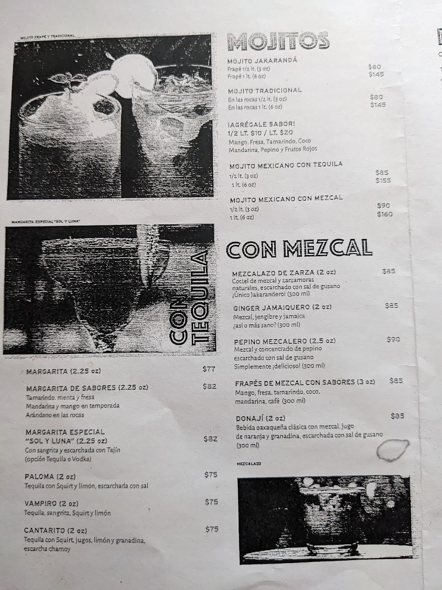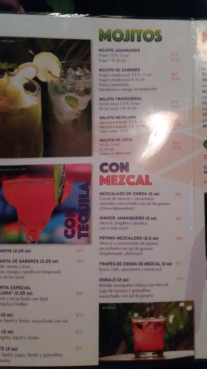 Jakaranda Mojito Bar Menu