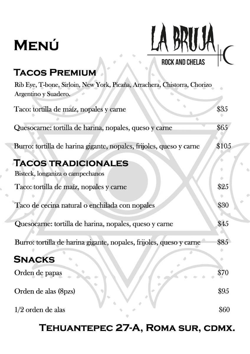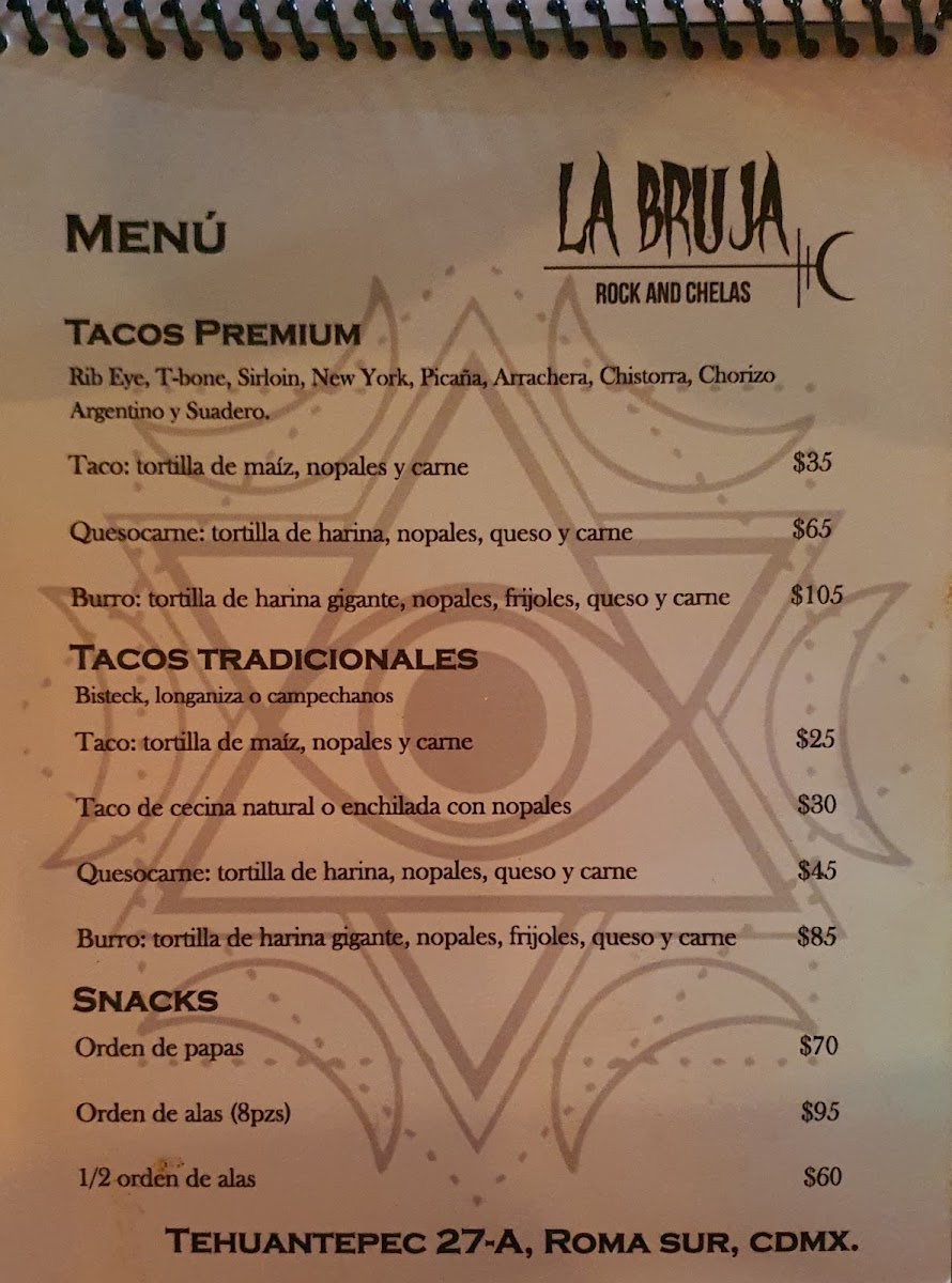 La Bruja De Tehuantepec Menu
