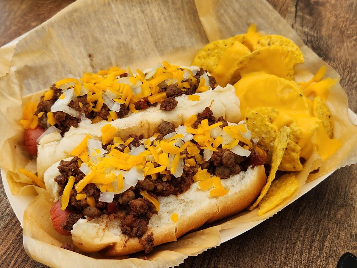 If your looking for a delicious hot dog and some cold beer in a frozen mug, then look no further. So many different hotdogs to choose from. I went with the Cincinnati dogs and nachos and cheese. It was starting to get busy, and there was one person handling outside. She did an awesome job making sure everyone had everything they needed.