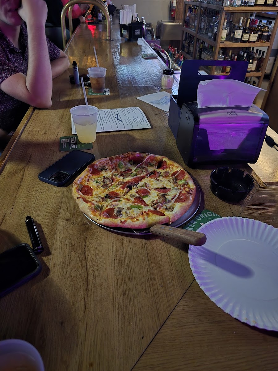 Awesome service!! Kim(always smiling) is our favorite and also getting to know Heather, ice cold beer, Great Pizza at a price you can’t believe , To die for Hot Dogs, Clean and Great music always playing , our Favorite Local place!