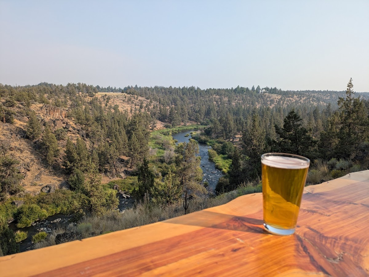 I love this place. You can’t beat the atmosphere there. It’s a beautiful view overlooking the Deschutes. The staff is very helpful and friendly and the selection of beer and wines are great. They do offer snacks/desserts that are so yummy. I go there every time I’m at Eagle Crest.