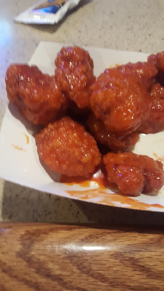 Sunday afternoon, has pretty good variety on menu. Appetizers are low cost, not large portions, but better so you can have two. 75 cent boneless wings on Sunday, great selection of sauces.