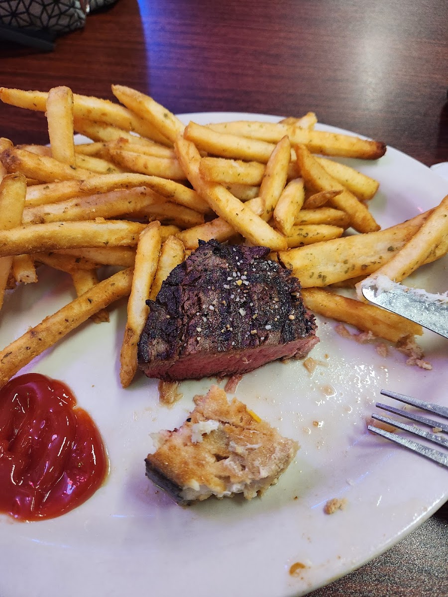 The food was beyond amazing. The salad bar was loaded with fresh delicious ingredients, the wagyu was impeccably cooked, the swordfish steak was still moist and delicious. I would rate the food five stars, and the service was just as amazing. The staff all contributed to make service amazing, we will definitely make this a regular favorite. They went out of their way to make me a drink that wasn't even on their menu, and even though it is a bar, the atmosphere was friendly and lively and comfortable.