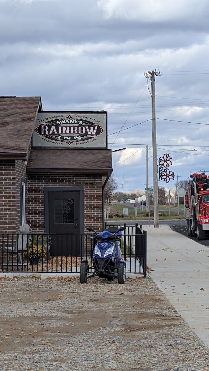 Swany's Rainbow Inn Bar & Grill is located at 101 S Robinson St, Perrinton, MI 48871, United States, and operates as a bar. Garnering 241 reviews, it experiences peak wait times up to 15 minutes on Monday from 4:30 PM to 6:30 PM, Tuesday from 1:00 PM to 6:30 PM, and Wednesday between 2:30 PM and 5:00 PM. Popular items here include Beer, Bacon and Pineapple Pizza, Olive Burger, Mushroom Swiss Burger, and Fish Nuggets, offering a mix of bar staples and hearty meals.