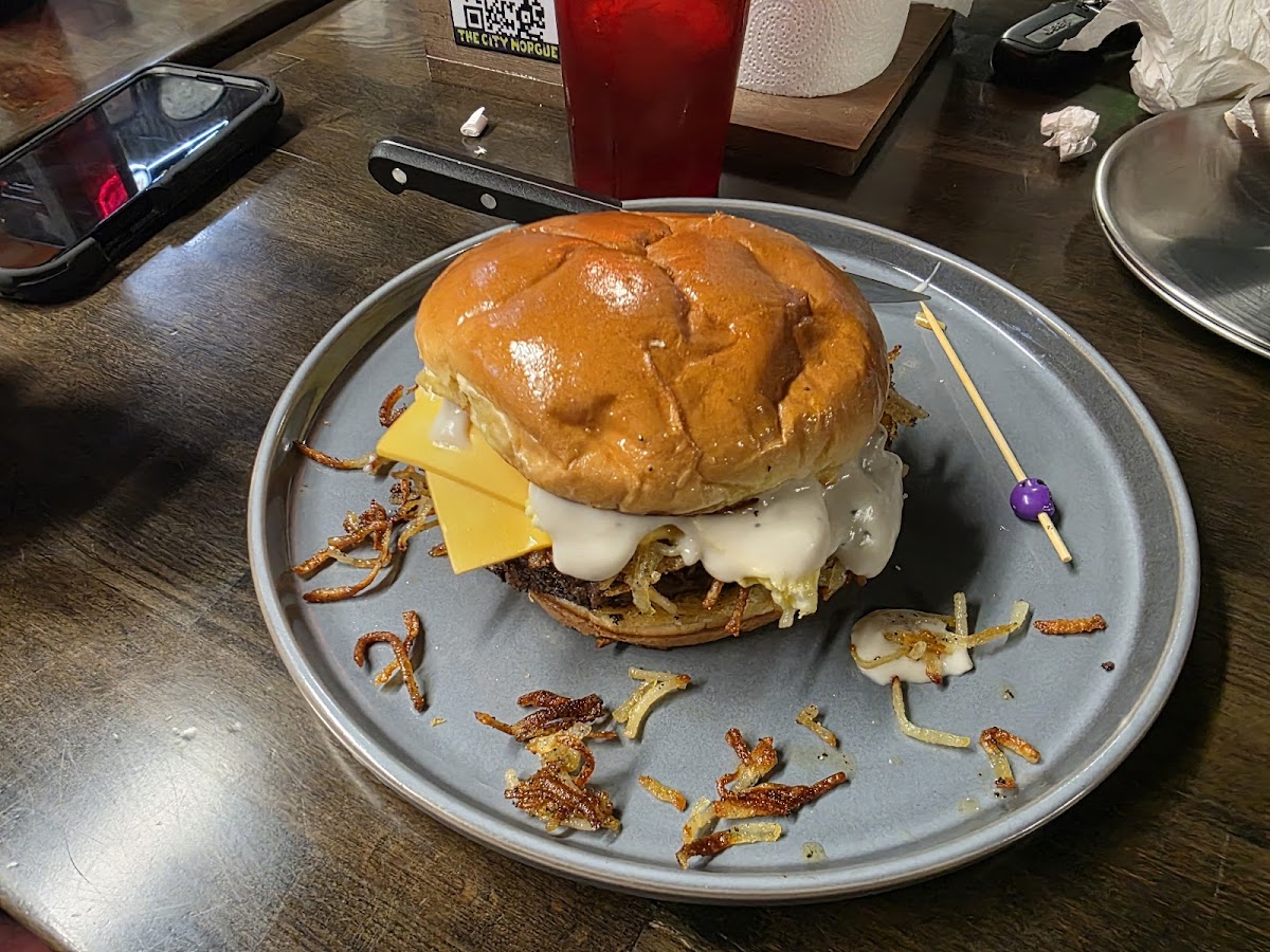 Super fun place and great food! Dive bar feel with several pool tables, complete with horror movie posters and props, and lots and lots of zombie stuff. Add friendly people and you have a winning combination! We were there for the food. Pizza, burgers, sandwiches, all with names that fit into the City Morgue restaurant theme. The Philly Cheese Steak (named the Philly Massacre) was a good sized sandwich with lots of filling and they did NOT skimp on the fries (already ate some fries before taking the pictures). Well spiced meat, melty cheese, and plenty of onions and peppers, and the fries were battered and fried - very crisp but not over done. Friends had the steak and fried okra, with good reports on both. Give them a try - well worth the 25 minute drive from Springfield.