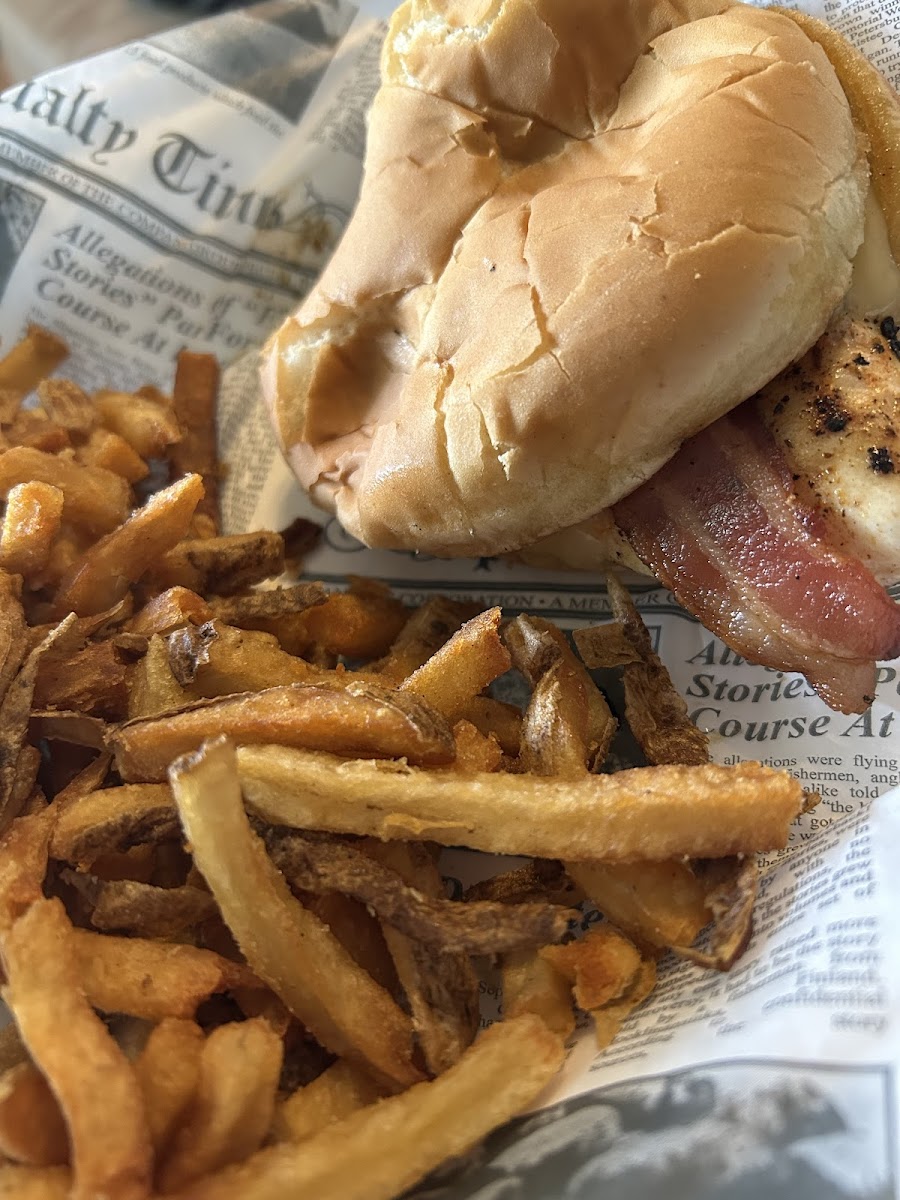 This Blackened Clucker sandwich is amazing!! Great service! Fries are great too!