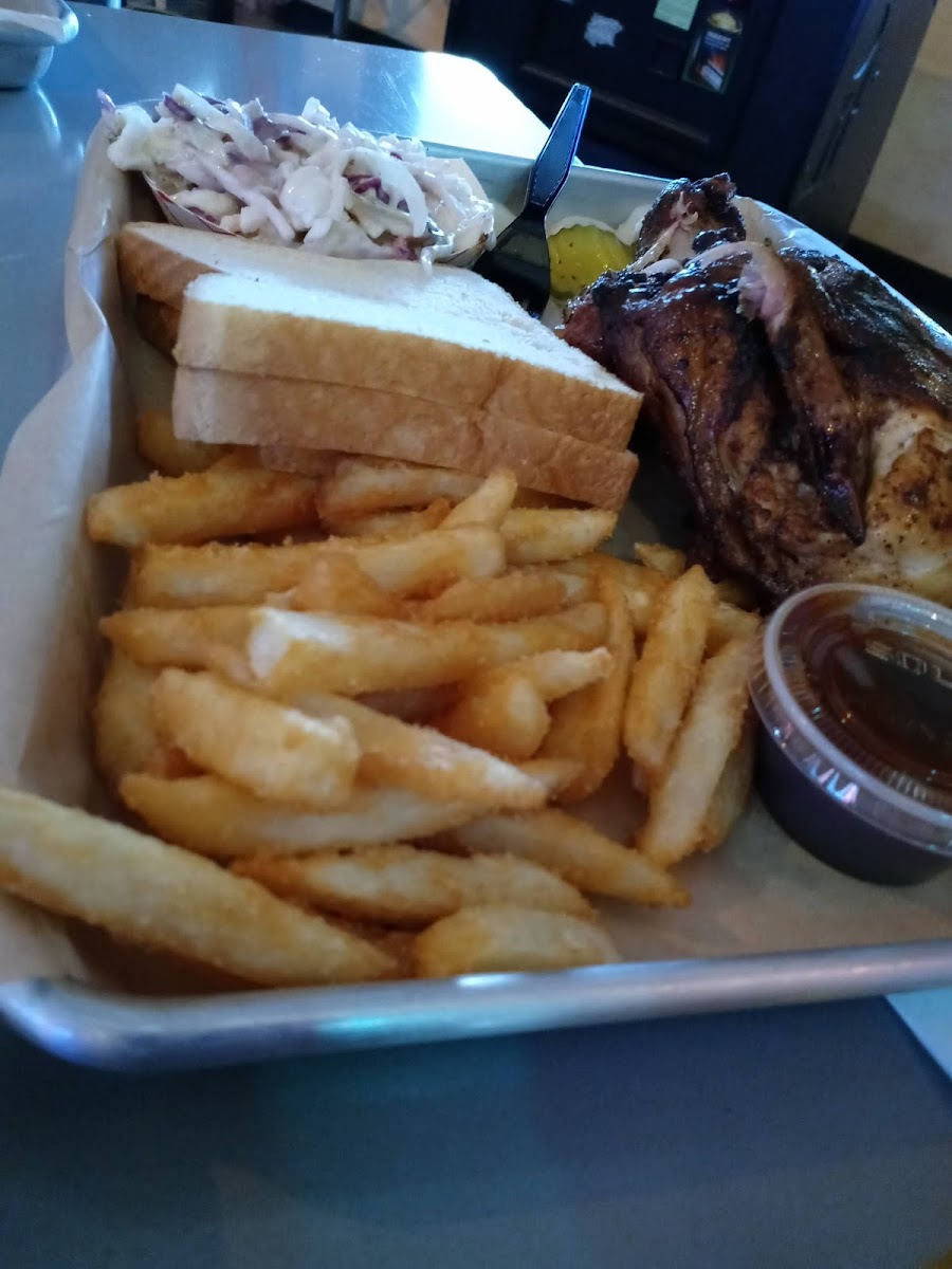Found this spot because they are open from noon-onward! Bartender is Dominique, and she is a peach. VERY quaint place, very nice inside and a nice wrap-around patio with a wood-burning fire pit. BBQ place next door is under same ownership and will bring food orders over to you. I'll be back!