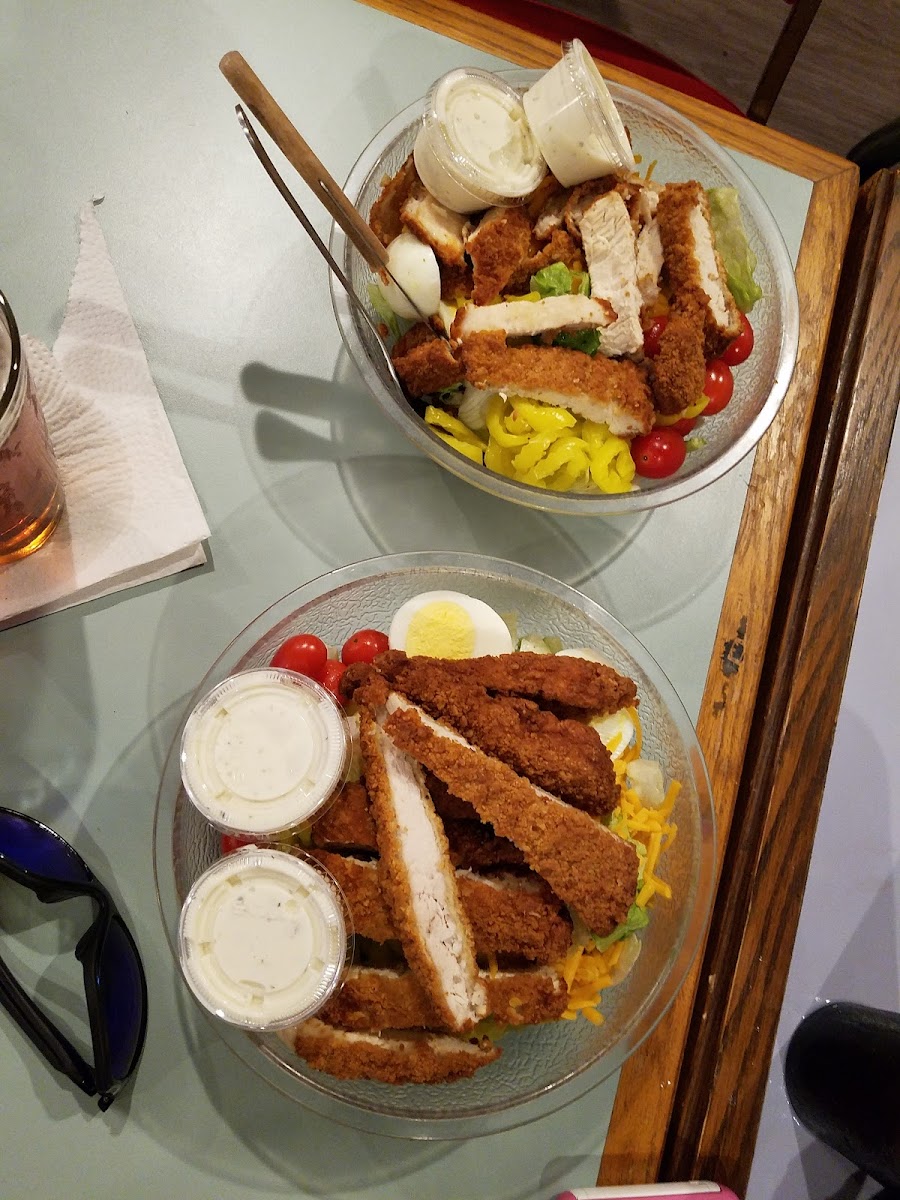 We stopped by Three Pines for a late lunch which meant our party of 6 had its choice of available tables. Though we waited a while after ordering, the food was worth it! To start we shared funnel cake fries and boneless mild wings w/ranch. Everyone at the table enjoyed the apps and their lunches and said they’d definitely order the same again (taco salad, Italian grinder, turkey bacon avocado wrap w/ onion rings, kids chicken fingers w/fries, Ruben w/ onion rings, and a Rachel). Three Pines is a great, family friendly local gem that’s worth a stop (especially if you want a wide selection of wing flavors).