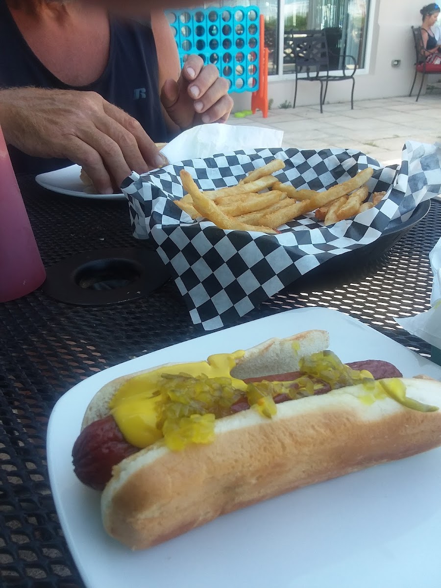Lunch at the Tiki Bar was quite good. We had mild wings as an appetizer. They were well cooked (crispy without being dry) and the sauce was a classic Buffalo. For lunch I had the Rockfish Tiki Tacos. I highly recommend them. Just the right amount of spice and lots of filling. My wife had the cheeseburger. It was a classic American burger with lettuce, tomato and American cheese and was well cooked and juicy. The server was attentive and polite and was very much a positive part of the experience and the atmosphere is what you would hope: fun, friendly and outdoors with a great view of the mouth of the river. There were only two negatives. The first was the price of sides. I love French fries but didn't order them because they were overpriced. The rest of the pricing was good, but almost $5.00 for fries was out of line with the rest of the menu. The second was the biting flies. Nothing they can control, but be prepared! Overall I recommend going and suspect you will enjoy your meal and the restaurant very much.