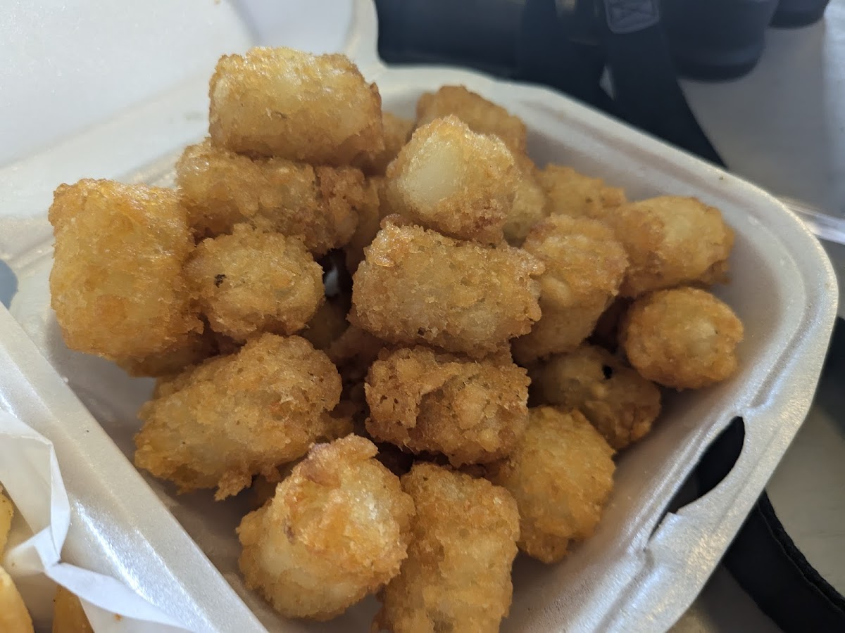 The burgers and chicken sandwich were fresh and delicious w good fries or tots. Pizza is made with pride but get your order in right when they open or the wait can be long. They can only bake two pies at a time w ~20 min cycle time. It is worth the wait if you need pie.
