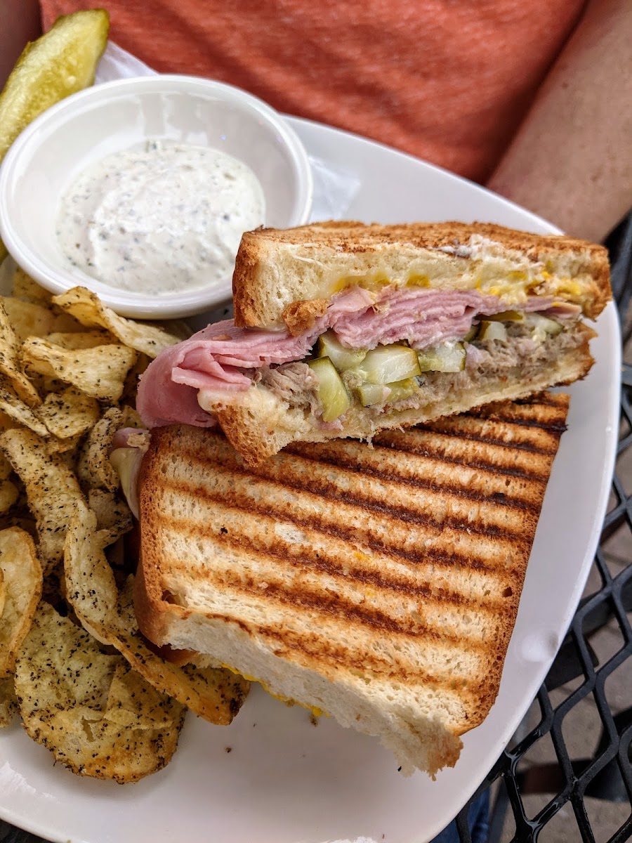 Great food & beer. Cuban is my favorite thing there. Love the pairings on menu. Great place with friends and vibes really cool. Pretzels are great. Cheese dip needs more cheese less mustard and honey or something sweeten it. Their chips n dip are so good.