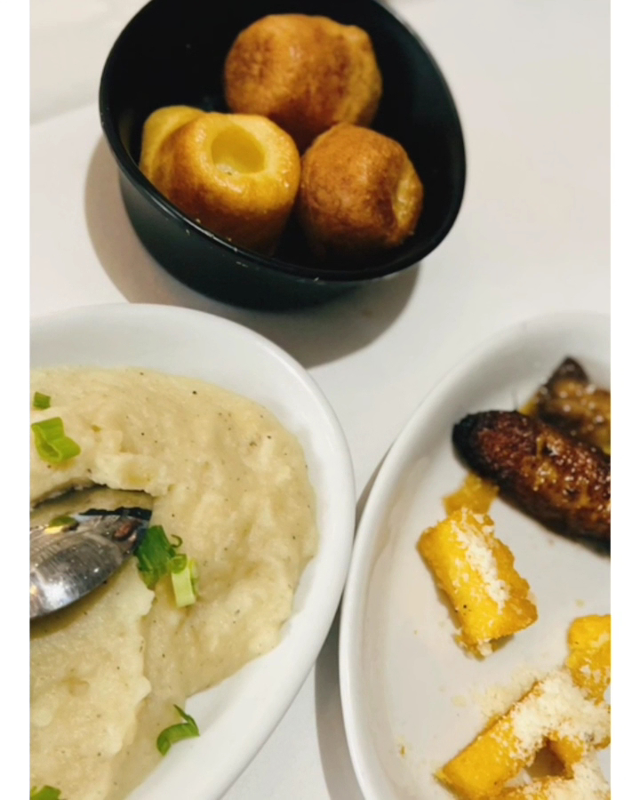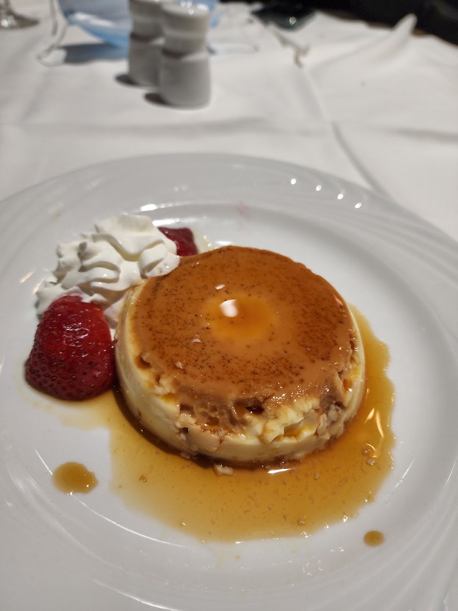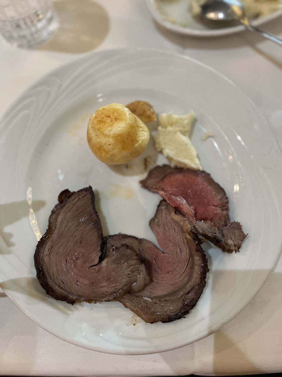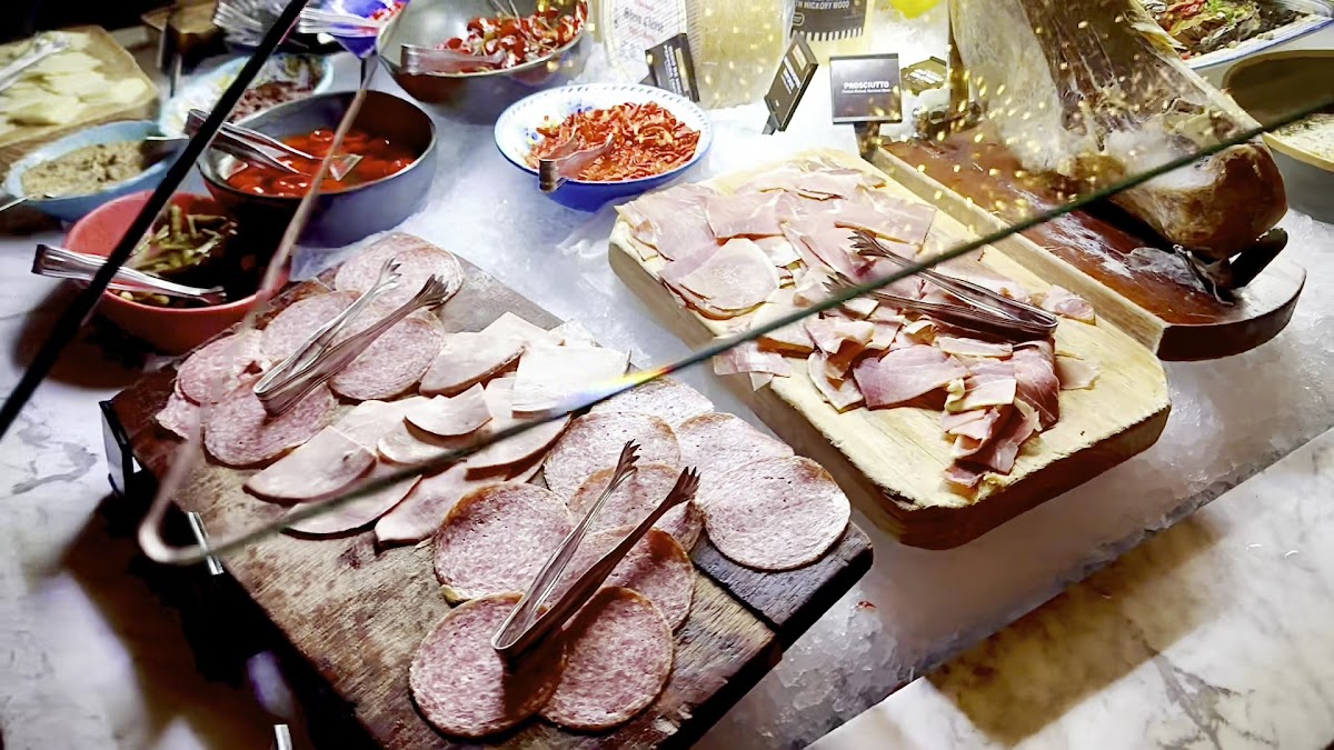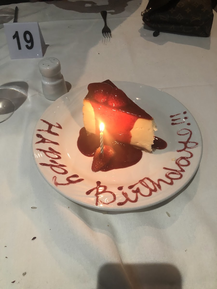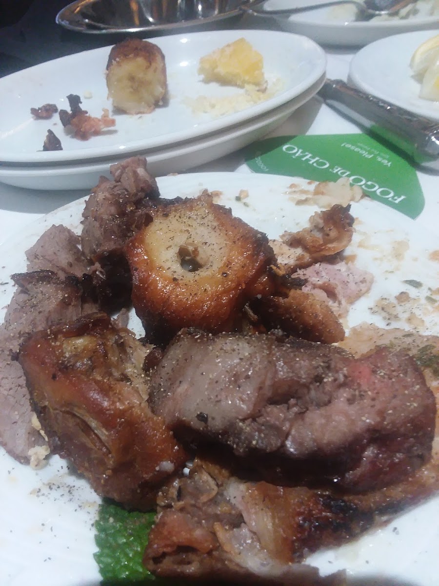 We are brazilians and tried many brazilian churrascarias before, but since we were visiting Chicago, we were curious to experience an “American version”. I am happy that we came. Overall, the meat selection is good. It does not have the same variety as traditional churrasco as back home, but it was ok. The main down side for us is that most of the meat cuts were missing seasoning in our opinion, so we had to ask for table salt and it helped a bit. The cuts are fresh and tasty, and being an all-you-can-eat experience, you won’t find a premium steak here, but they for sure match the value that you are paying for. Starting with the salad bar, there is a variety of vegetables and cold cuts. They also bring some hot bites to the table, such as Fried Polenta and Pao de Queijo. The picanha is of course one of the highlights. Bottom sirloin was good as well. The queijo coalho (grilled curd cheese) is always a great confort food, and we were happy to taste it here. We almost skipped the chicken, because hey, we eat a lot of chicken at home, but I am glad that we tried one. The chicken was so well marinated, perfectly grilled, and juicy that it was probably the best option of the entire meal. We visited on a monday at around 3pm, so it was not the peak time, but they still had a good crowd concentrated in one area of the restaurant. That is probably why the service was a bit slow. Some cuts only came one time, and other cuts like Linguiça and Lombinho did not come to our table at all over the nearly 2 hours that we stayed there. We still had plenty of other cuts, and left the place fully satisfied, although we missed some things that we were looking forward to trying there. It was our anniversary, and the server was kind to give us a dessert, which we had no room left for it, but it was so delicious that we finished it all.