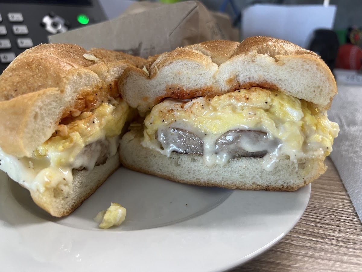 The best sausage, egg and cheese on a Kaiser roll with salt, pepper and ketchup I’ve ever had! Really hit the spot!!