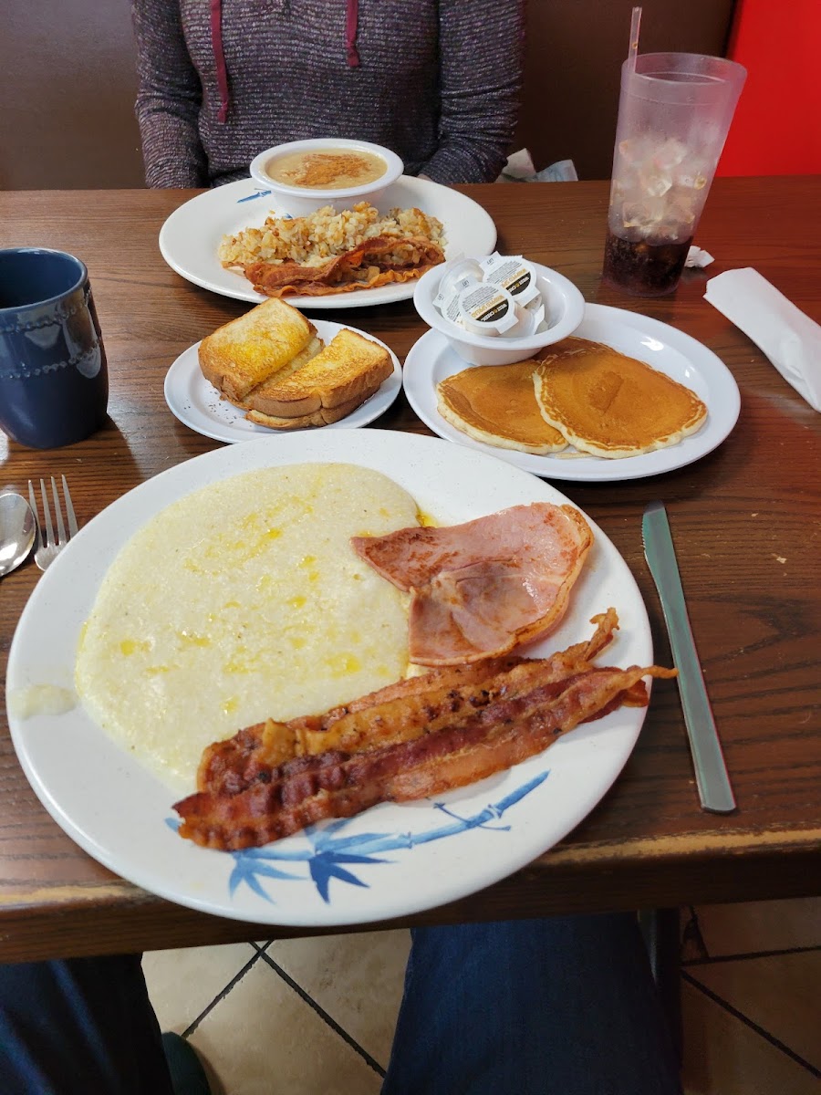 I had breakfast at Anna J's for the first time. The staff is very friendly and the food comes out fast. I had the Bubba's He-Man Breakfast that comes with 2 eggs, a choice of meat, 3 pancakes, grits, toast, and coffee. It was a lot of food and very good. I was so full after eating at Anna J's.