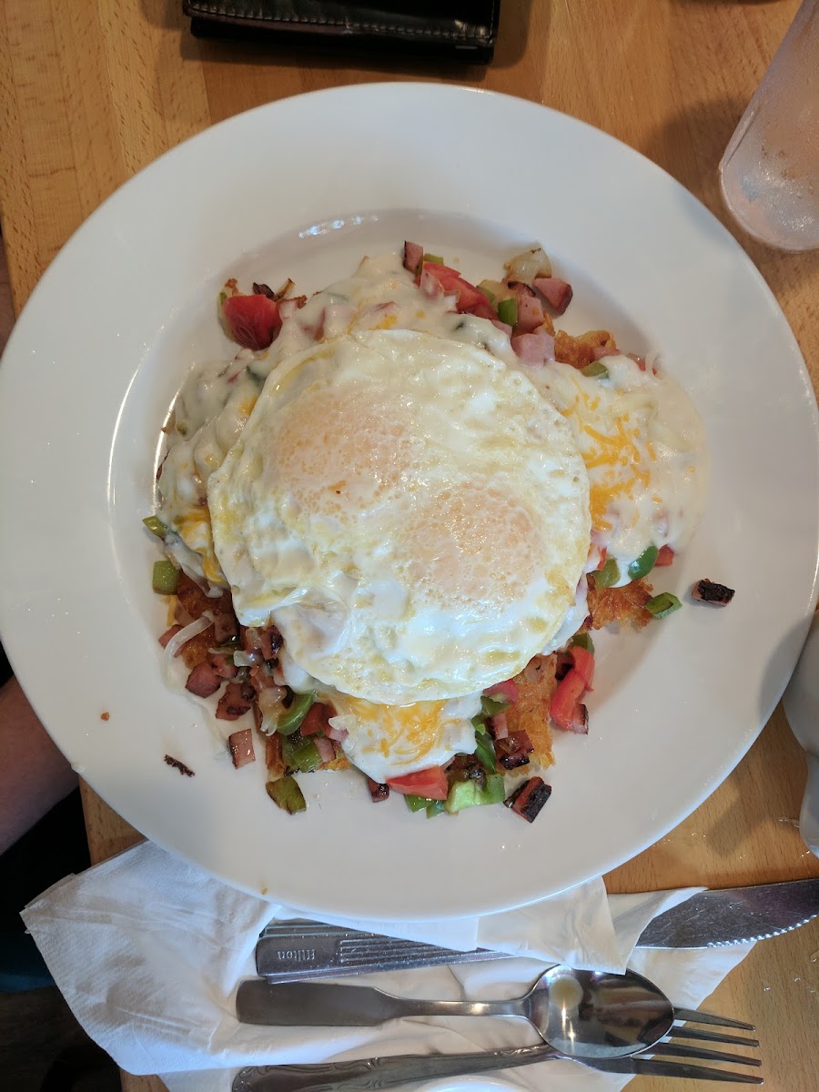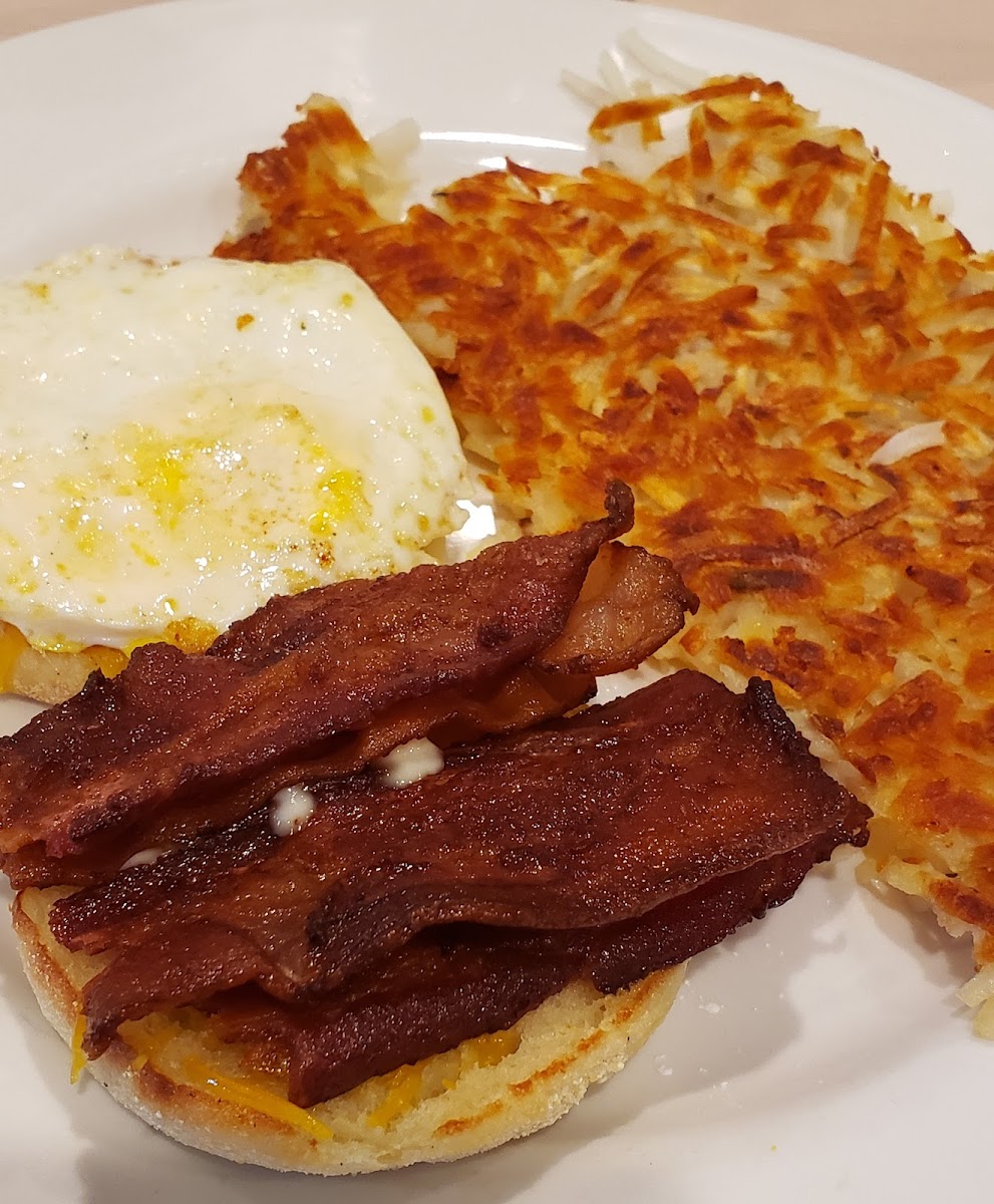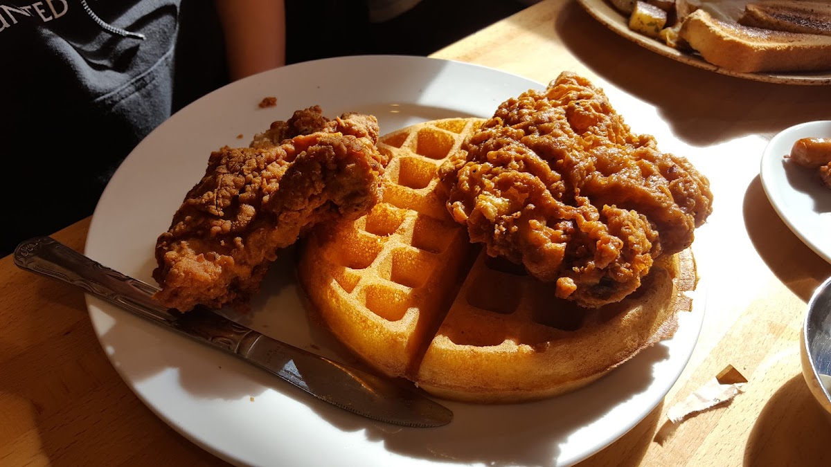 I have been going to this establishment for many years. Both locations are fantastic. The owner Joy passed away, so the community & I will miss her greatly! This location used to be Keystone Cafe many years ago. At today's meetup group there were 10 of us. We all loved the atmosphere, our server Leslie & the food. I didn't do my Google Guide job by going around & asking folks if I could take photos of their food, because I didn't want to be rude, so I snuck some photo taking of folks plates who sat close to me. I can tell you it all looked SUPER delicious, especially the Chicken & Waffles & the Benedict. My order was the yummy Breakfast Sandwich, on an English Muffin with Cheddar, Crispy Bacon & my normal Egg over hard, pop the yolk. It came with Hash Browns & I had Decaf Coffee too. My Sandwich was tasty & the Bacon was thick, not salty & crunchy! We all had a fantastic Meetup & I will for sure be back to order the Benedict. Thank you to Leslie our server, she never missed a beat & she said she was new, but I thought she had worked there for years, because she was very delightful & handled our large group with grace.