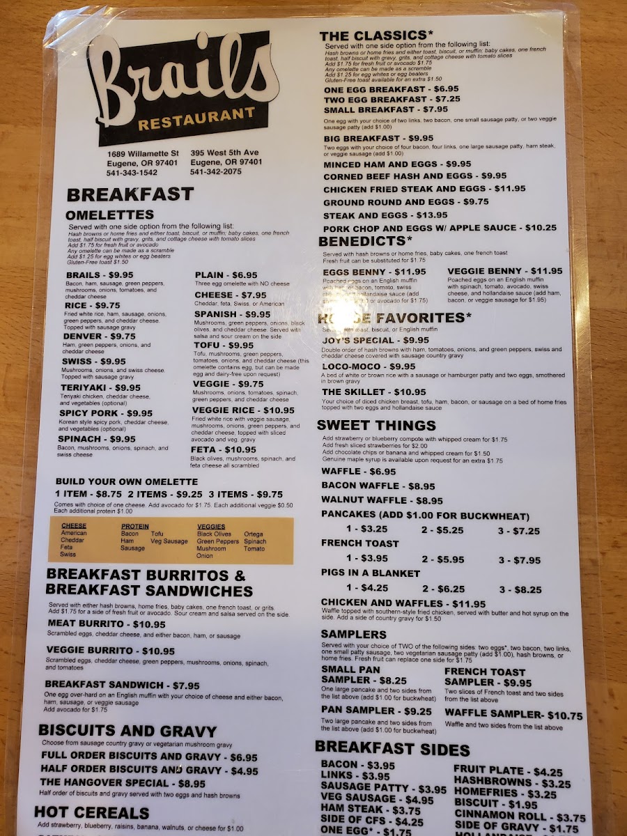 Large order of hashbrowns with ham, tomatoes, onionsand green peppers, swiss and cheddar cheese covered with sausage gravy.