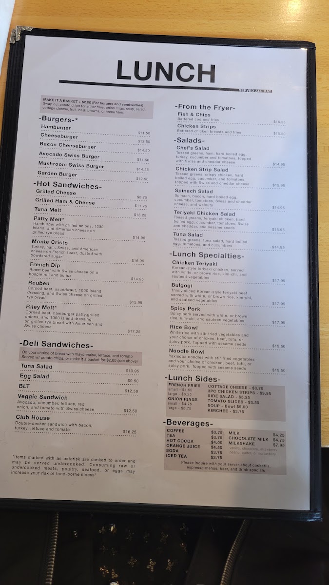 One egg over-hard on an English muffin with your choice of bacon, ham or patty sausageand choice of swiss, cheddar or American cheese. (not served with toast).