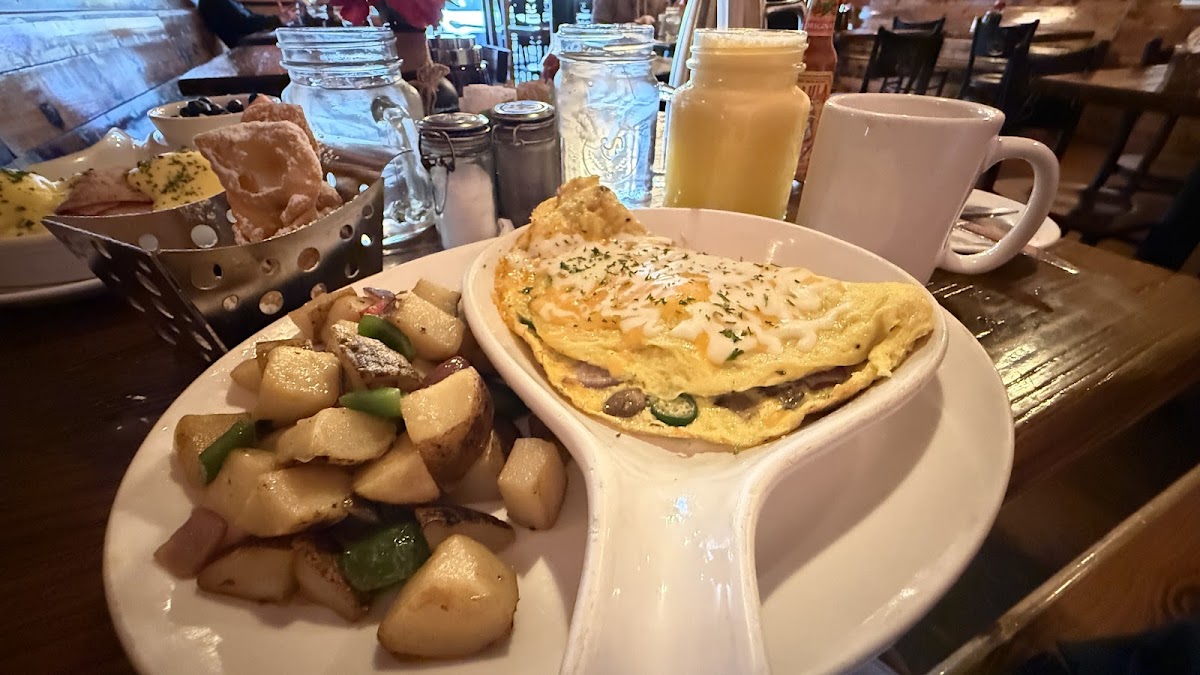 Off Nolensville Pike in Antioch, amidst the hum of freeway construction and the shuffle of orange cones, sits Eggstravaganza Café, a cozy breakfast haven quietly holding its own against the clamor outside. Inside, the aroma of freshly brewed coffee and a sizeable crowd greets you before you even find your seat. Each breakfast starts with a complimentary Angel Wings; delicate fried dough dusted with powdered sugar. They snap apart with the gentlest pull, each crisp bite melting sweetly on the tongue, especially divine when dipped into a warm cup of coffee. One of my companions ordered the Our Way Cuban sandwich, an unexpectedly complex treat layered with sliced ham and pork belly, caramelized onions, Swiss cheese, bread and butter pickles, and a homemade sweet mustard sauce, all pressed together in a ciabatta bun. The ham and pork belly, glazed in that sweet-heat sauce, created a rich and satisfying bite, equal parts smoky, tangy, and tender. The omelet, stuffed with bacon, spinach, mushrooms, and cheese, was nothing short of perfection. Fluffy yet hearty, each forkful carried a savory balance without tipping into grease. It’s the kind of breakfast that feels homemade in the best possible way. For drinks, the vanilla latte came with a swirl of foam art, smooth, creamy, and mellow, perfect for slow mornings. The mocha was a standout too, balancing real chocolate flavor without falling into syrupy sweetness. Despite the construction chaos outside, Eggstravaganza Cafe feels like a small, delicious escape. The warmth of the food and the thoughtful execution of each dish make this spot worth the detour. It’s the kind of place where breakfast feels like home rather than a routine. I’ll definitely be back next time, maybe for the pancakes everyone seems to be raving about.